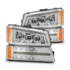 Introducing our Chevrolet Cateye Silverado NOVA-series full LED headlights, designed to elevate your driving experience. These headlights feature three of our exclusive 3D ice-cube projectors, accompanied by matching bumper lights. With a versatile light tube, the headlights and bumper lights serve as both DRL and turn signal lights on both sides. You have the option to configure the light tube to display white as the default DRL color or switch to amber. The light tube also incorporates a sequential turn signal in an amber hue. In addition to these features, our headlights and bumper lights include an activation light that illuminates when you start your Silverado, adding a touch of flair to your vehicle. The three projectors are dedicated to low beam functionality, ensuring optimal visibility. When you engage the high beam, the outer two projectors activate, further enhancing your lighting performance. Upgrade your Chevrolet Cateye Silverado with our Chevrolet Cateye Silverado NOVA-series full LED headlights and bumper lights for a combination of style, functionality, and safety on the road.