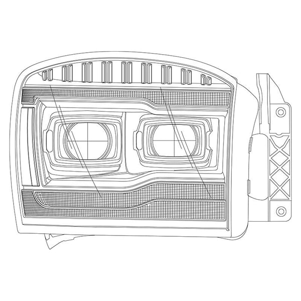As our second-tier headlights, the LUXX-Series showcases AlphaRex’s commitment to excellence. In the absence of the NOVA-Series ice-cube 3D projectors, the LUXX-Series adopts a common rectangular-look projector design, providing either a dual-projector appearance or a single dual-beam projector configuration. Powered by AlphaRex LUXX LEDs, these 3rd gen Dodge Ram LUXX-Series Headlights deliver supreme performance without compromise. Crafted with precision, our 3rd gen Dodge Ram LUXX-Series Headlights ensure a perfect projection cut-off line compliant with American LHD regulations that meet DOT/SAE requirements.
