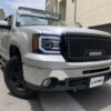 These 3rd gen GMC Sierra PRO-Series Headlights feature a Jet Black themed housing, representing our first-generation design with a glossy black finish and our inaugural white-tube DRL. This unique combination enhances your 3rd gen GMC Sierra‘s appearance, providing an aggressive look with added texture to the headlights.