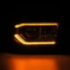 To ensure optimal signaling, amber halogen light bulbs are positioned at the bottom for turn signal functionality, enhancing safety during lane changes and turns. The projector is dedicated to low beam illumination, while a built-in LED at the center provides powerful high beam output, ensuring clear visibility in various driving conditions.