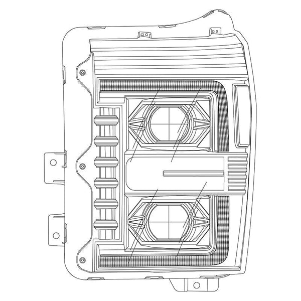 As our second-tier headlights, the LUXX-Series showcases AlphaRex’s commitment to excellence. In the absence of the NOVA-Series ice-cube 3D projectors, the LUXX-Series adopts a common rectangular-look projector design, providing either a dual-projector appearance or a single dual-beam projector configuration. Powered by AlphaRex LUXX LEDs, these 3rd gen Ford Super Duty LUXX-Series Headlights deliver supreme performance without compromise. Crafted with precision, our 3rd gen Ford Super Duty LUXX-Series Headlights ensure a perfect projection cut-off line compliant with American LHD regulations that meet DOT/SAE requirements.