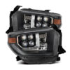 Experience the sleek sophistication of our 2nd gen Toyota Tundra NOVA-Series Headlights in Alpha-Black themed housing, specially designed with a glossy black finish and black accents to give your 2nd gen Toyota Tundra a sporty chrome-delete appearance.