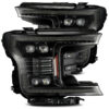 Experience the sleek sophistication of our 13th gen Ford F150 NOVA-Series Headlights in Alpha-Black themed housing, specially designed with a glossy black finish and black accents to give your 13th gen Ford F150 a sporty chrome-delete appearance.