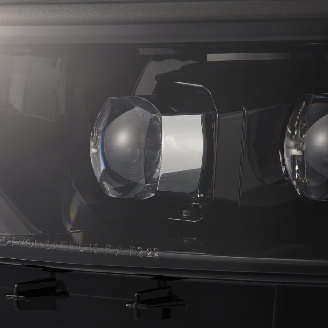 Our Ford Mustang NOVA-Series headlights feature a tri-projector design, with all three projectors working as low beam and the outer two projectors also functioning as high beam. We use Osram Oslon black flat LED chips for the low beam projectors and AlphaRex LUXX LED for the high beam projectors.