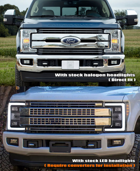 Introducing our 4th Gen Ford Super Duty MKII LUXX-Series projector headlights, expertly crafted to deliver a seamless blend of style and performance for your 4th generation Super Duty truck. Building on the AlphaRex MKI headlights, these MKII headlights feature a refined, slimmer LED tube and dual square projector lenses. The upgraded clear lens with a reflector cup for the DRL, instead of the older white DRL tubes, enhances visibility in daylight and makes turn signals more visible under sunlight. Additionally, you can choose between white or amber DRL color options for a customized look.