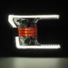 Our 13th gen Ford F-150 PRO-Series projector headlights feature a dual projector design, complemented by an LED bar surrounding the light, which serves as both a DRL and signal light. These headlights are equipped with switchback white LED DRL and amber LED sequential turn signal functionalities, accompanied by an activation light feature that activates a running light sequence upon unlocking your F-150, enhancing both visibility and style. Positioned at the center is our signature claw amber lens signal light, adding a distinctive touch to the design. The top projector is responsible for low beam illumination, while the bottom projector provides high beam functionality. For illumination, these headlights utilize H7 halogen bulbs for both low and high beam operations, ensuring reliable performance on the road. Experience enhanced visibility and a refined look with our 13th gen Ford F-150 PRO-Series projector headlights.