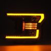 Our 13th gen Ford F-150 PRO-Series projector headlights feature a dual projector design, complemented by an LED bar surrounding the light, which serves as both a DRL and signal light. These headlights are equipped with switchback white LED DRL and amber LED sequential turn signal functionalities, accompanied by an activation light feature that activates a running light sequence upon unlocking your F-150, enhancing both visibility and style. Positioned at the center is our signature claw amber lens signal light, adding a distinctive touch to the design. The top projector is responsible for low beam illumination, while the bottom projector provides high beam functionality. For illumination, these headlights utilize H7 halogen bulbs for both low and high beam operations, ensuring reliable performance on the road. Experience enhanced visibility and a refined look with our 13th gen Ford F-150 PRO-Series projector headlights.
