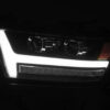 These 5th gen Ram 1500 LUXX-Series Headlights feature a Jet Black themed housing, representing our first-generation design with a glossy black finish and our inaugural white-tube DRL. This unique combination enhances your 5th gen Ram 1500‘s appearance, providing an aggressive look with added texture to the headlights.