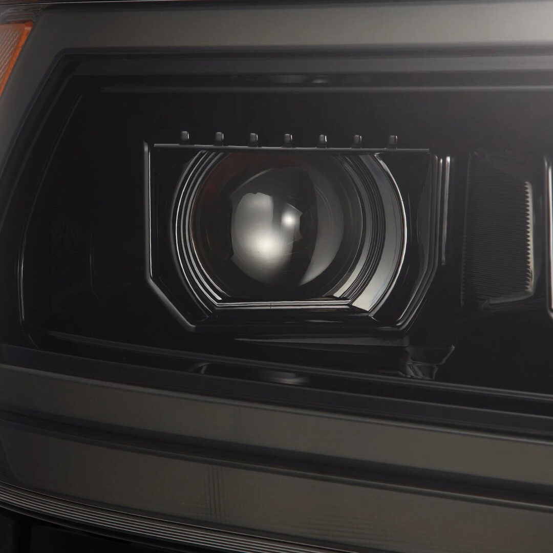 Experience the sleek sophistication of our 5th gen Ram 1500 LUXX-Series Headlights in Alpha-Black themed housing, specially designed with a glossy black finish and black accents to give your 5th gen Ram 1500 a sporty chrome-delete appearance.