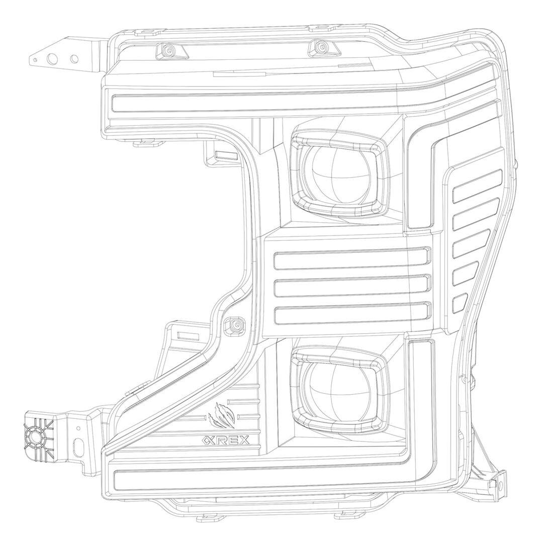 The 4th Gen Ford Super Duty PRO-Series Projector Headlights utilize dual projectors with H7 halogen bulbs for both low and high beams. Both projectors illuminate as low beams, while the bottom projector functions as a dual-beam, seamlessly switching to high beam for enhanced visibility in any driving condition.