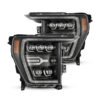 These 14th gen Ford F150 NOVA-Series Headlights feature a Black themed housing, meticulously crafted to exude a sleek matte black finish with chrome accents. Our specially designed housing enhances interior texture and adds intricate detailing to your 14th gen Ford F150‘s headlights, resulting in an aggressive appearance that commands attention.