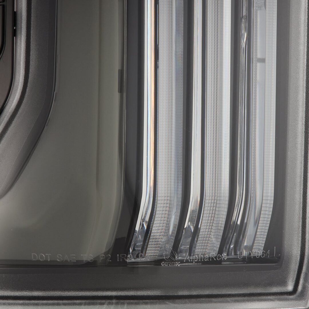 Our Alpha-Black themed housing with Clear lens showcases a glossy black finish complemented by sleek black accents and a smoked LED tube, enhancing the sporty chrome-delete appearance of your 4th gen Toyota Tacoma NOVA-Series Prismatic Tail Lights. The addition of clear lens allows for a clear view of the interior detail, further accentuating the aesthetic appeal of these tail lights.
