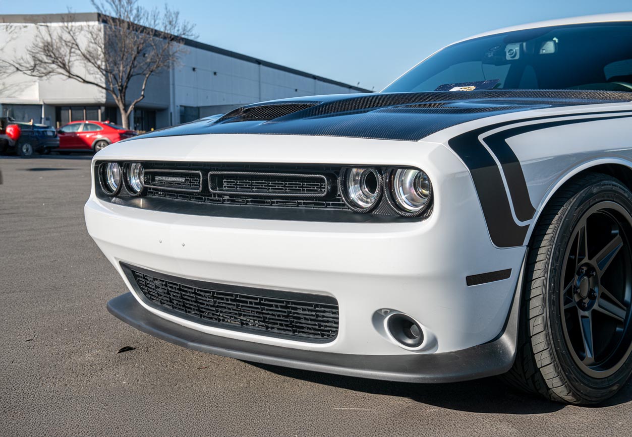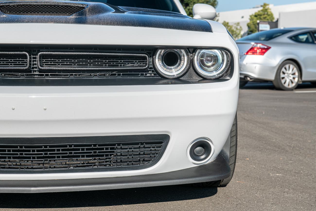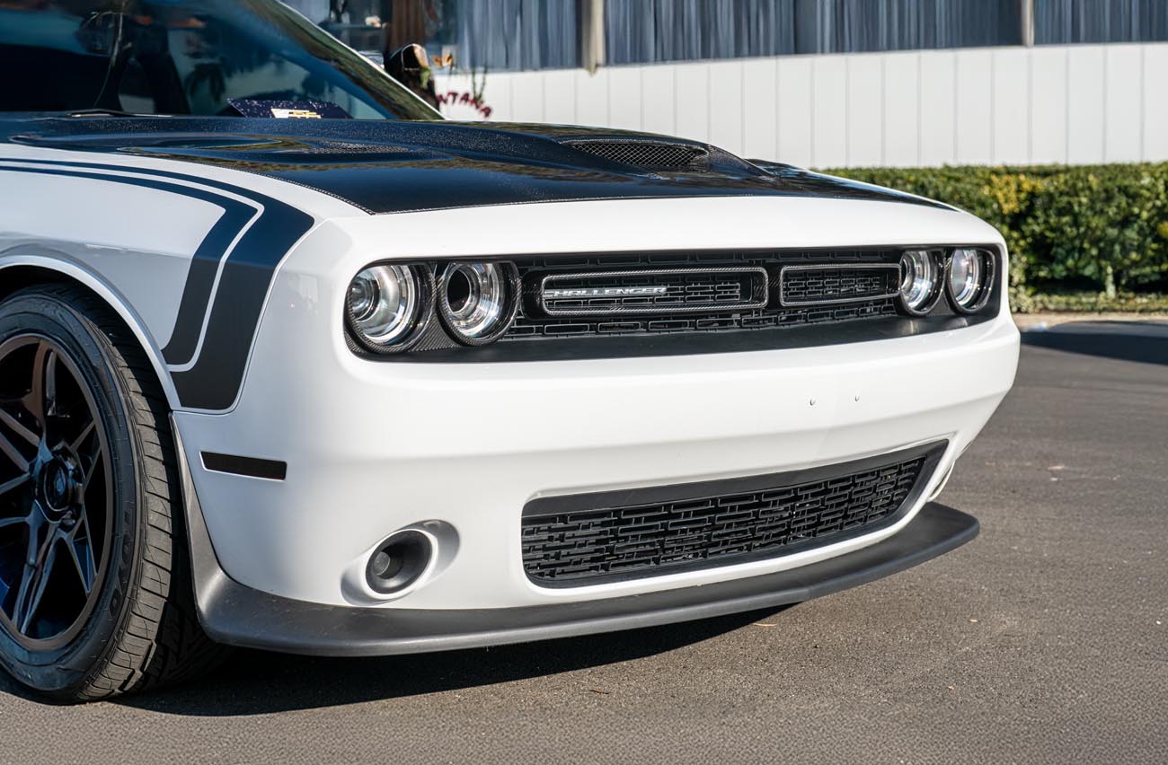 - For all 2015-2023 Dodge Challenger models with front bumper grille trim, this factory-style package includes a carbon fiber front bumper grille trim insert overlay, crafted from durable carbon fiber for a sleek surface finish.