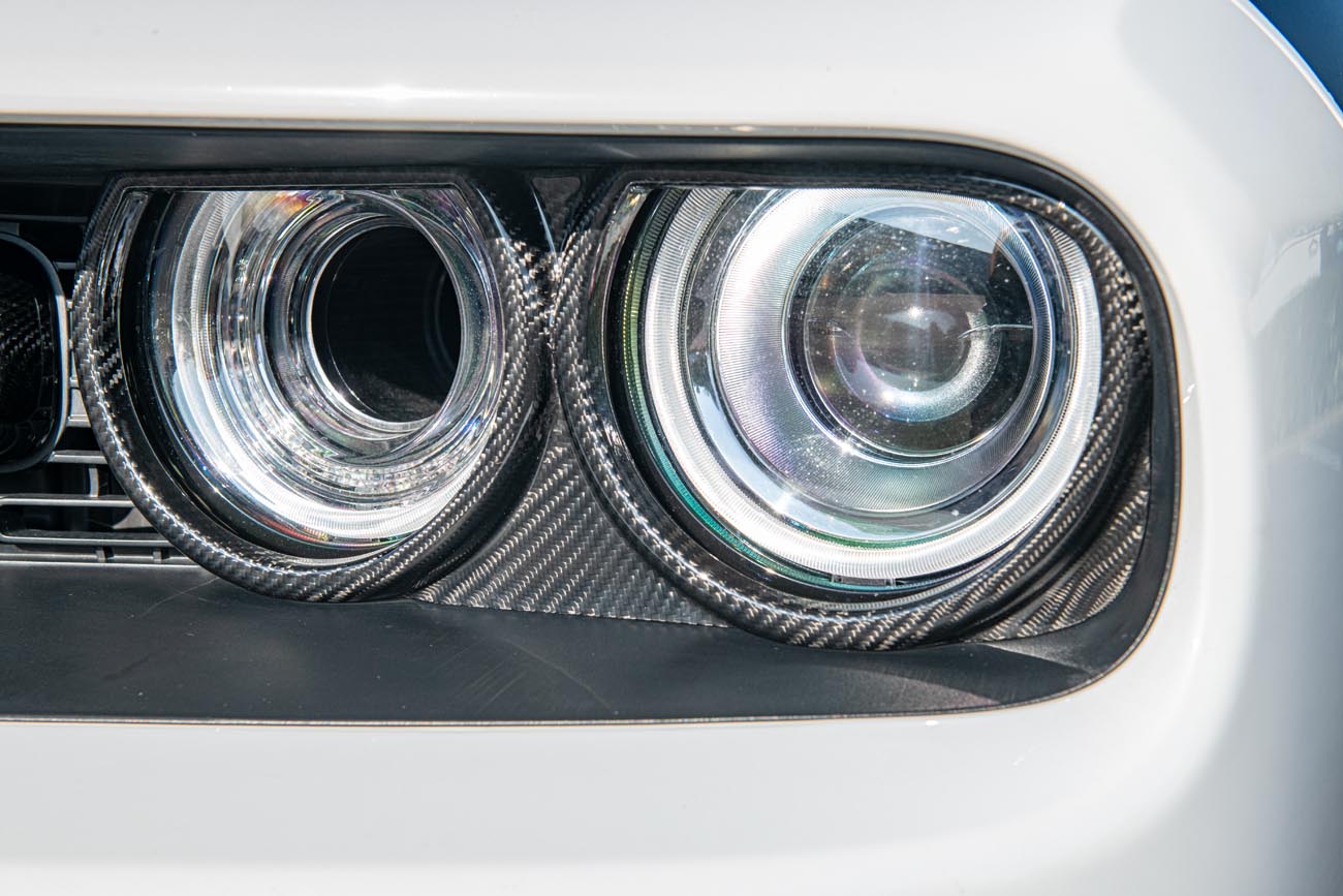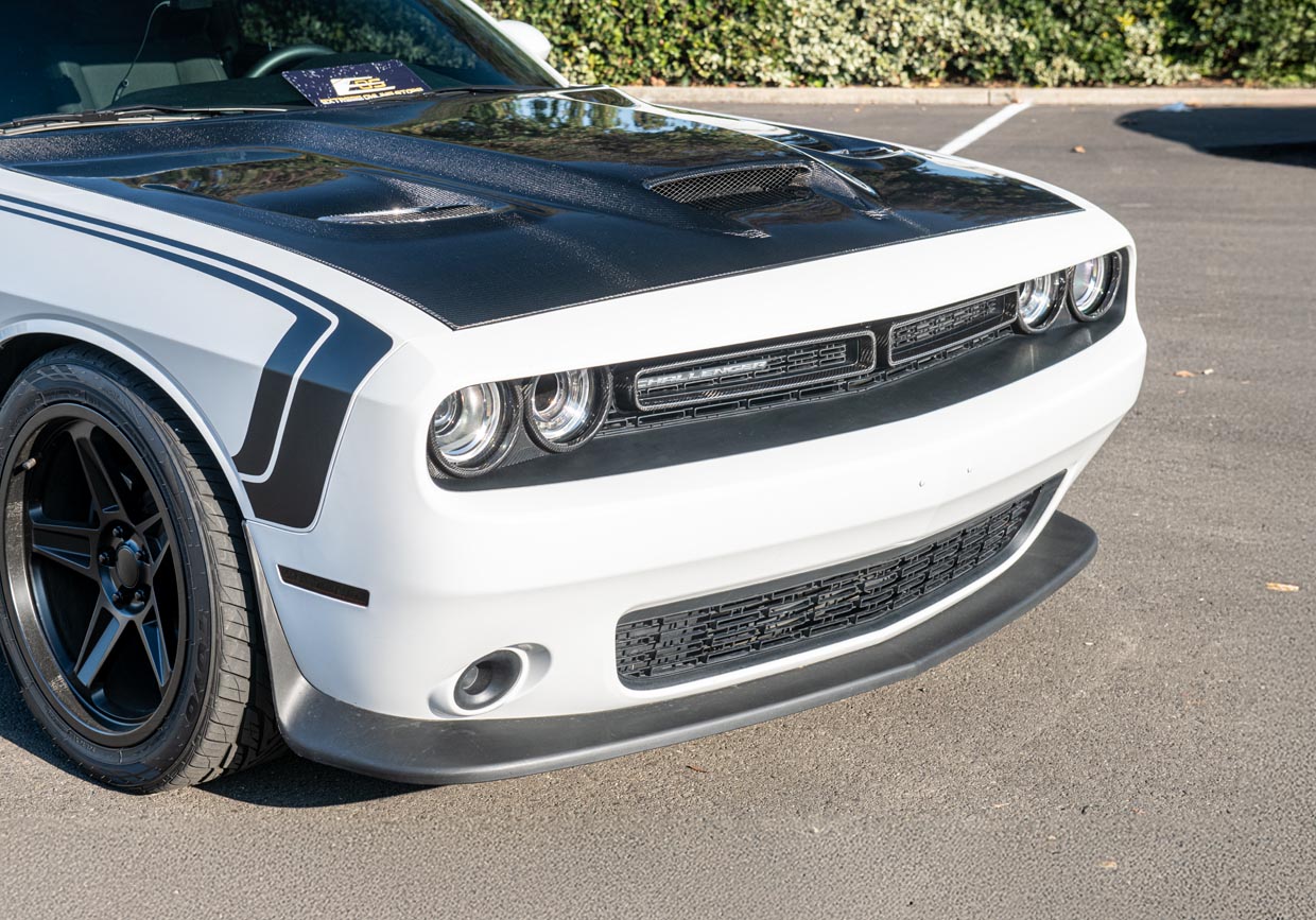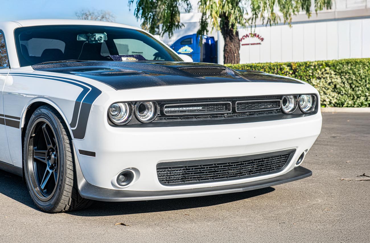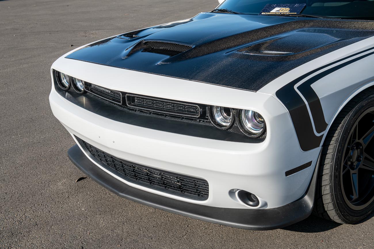 - For all 2015-2023 Dodge Challenger models with front bumper grille trim, this factory-style package includes a carbon fiber front bumper grille trim insert overlay, crafted from durable carbon fiber for a sleek surface finish.