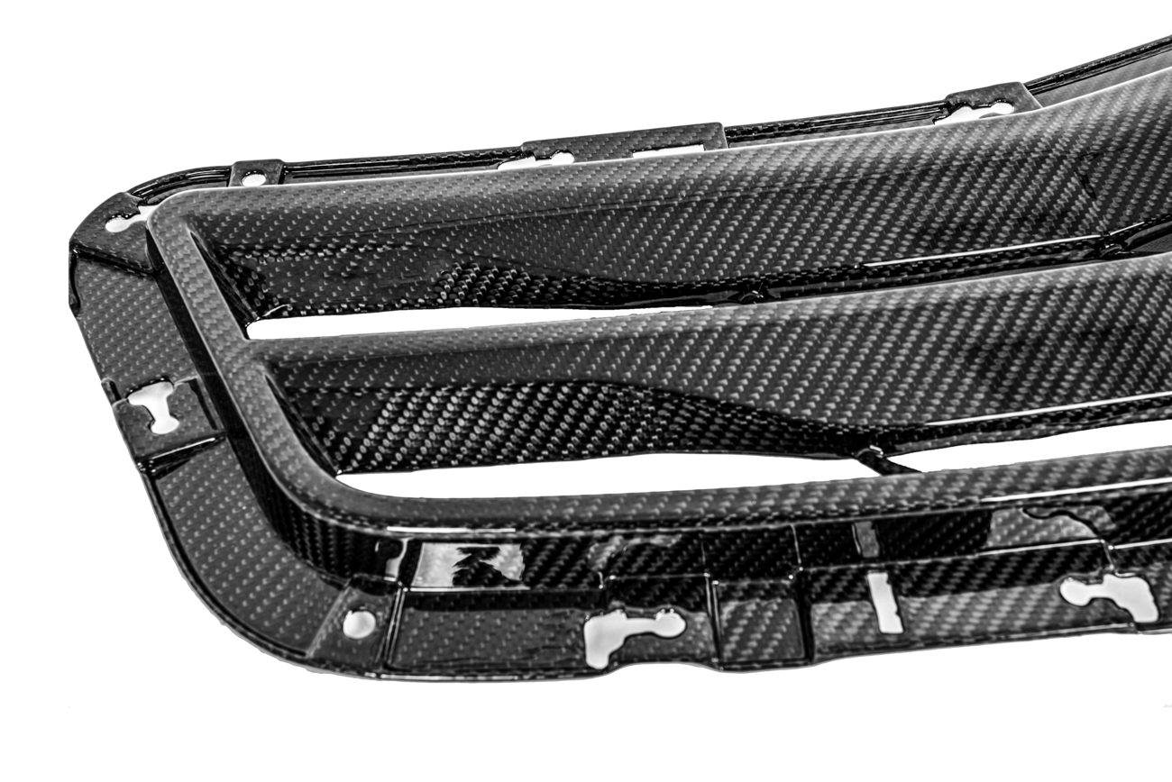 The 2016-19 Cadillac ATS-V Carbon Fiber Package is specifically designed for the Cadillac ATS-V model from 2016 to 2019. It is a package that includes various carbon fiber components to enhance the vehicle’s appearance and performance. The package includes the Cadillac ATS-V Carbon Fiber Hood Vent. This hood vent is made from carbon fiber, a lightweight and high-strength material known for its durability and performance characteristics. The carbon fiber construction adds a premium and sporty look to the Cadillac ATS-V’s front end.