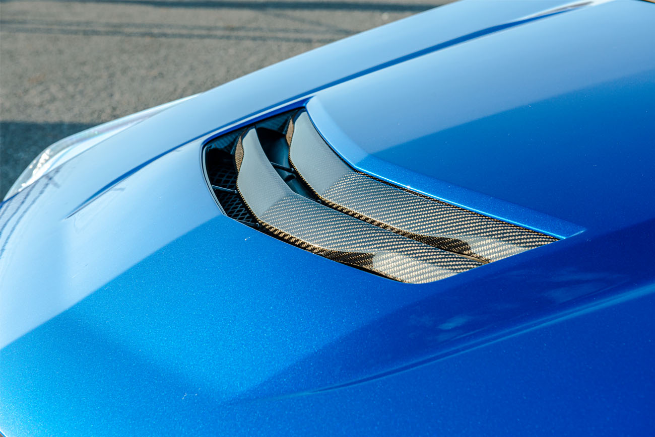 The Carbon Fiber Package is designed to provide a cohesive and sporty appearance to the Cadillac ATS-V. The carbon fiber hood vent replaces the original hood vent on the vehicle, adding a distinctive visual element. It not only enhances the vehicle’s aesthetics but also improves aerodynamics by optimizing airflow and reducing air pressure under the hood.