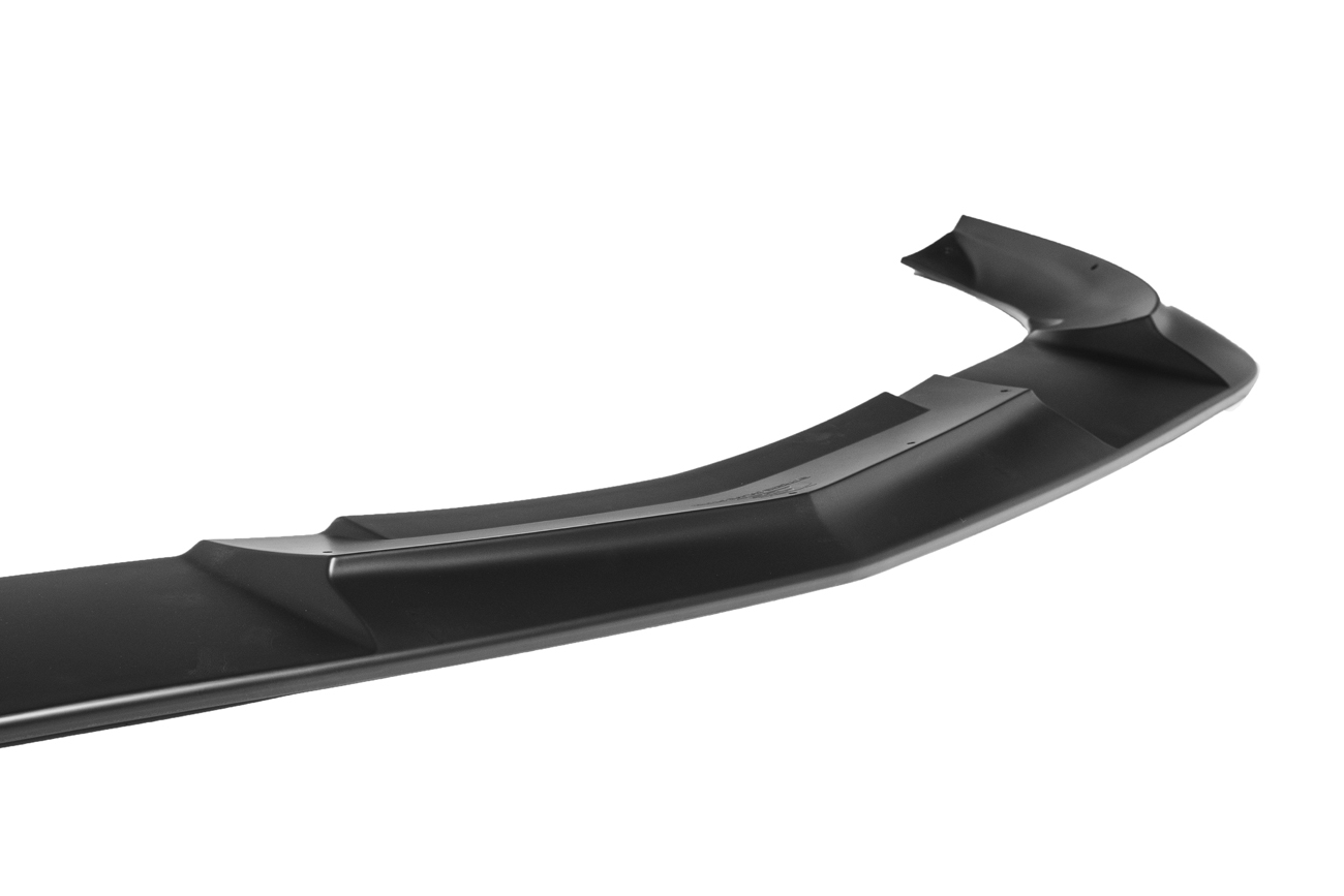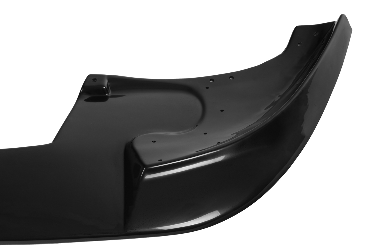 The front splitter lip is made of a material called reinforced polypropylene, which is a type of plastic that has been strengthened with additional fibers to make it more durable and resistant to deformation. The reinforcement process increases the component’s strength and makes it more resistant to impact and wear.