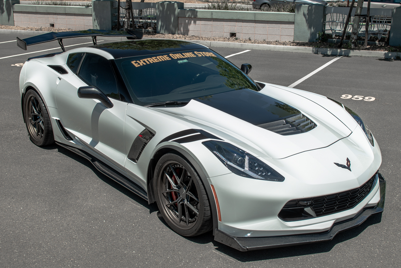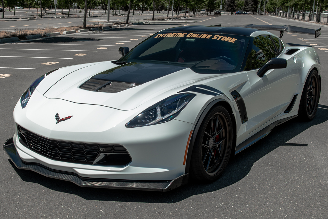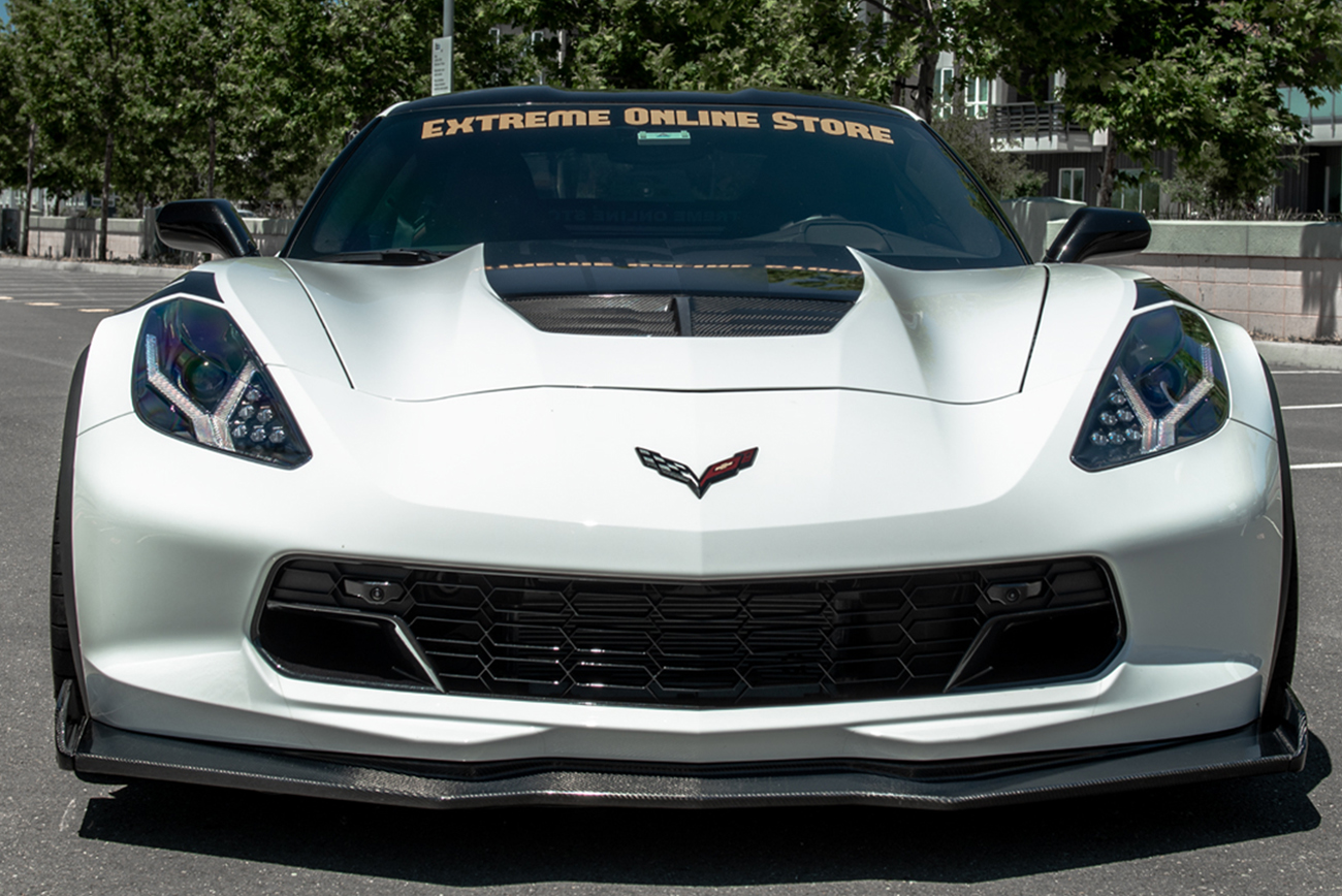 With our EOS Stage 2.5 aerodynamic kit, this Corvette C7 extended front splitter lip and side winglets will give your Corvette C7 a customized look and improves performance at this same time. This body kit includes a front splitter lip and front side winglets. Put together, these Corvette C7 parts and accessories effectively maximize downforce, giving the car better ground contact and grip for faster speeds and better handling, no matter where the road takes you.