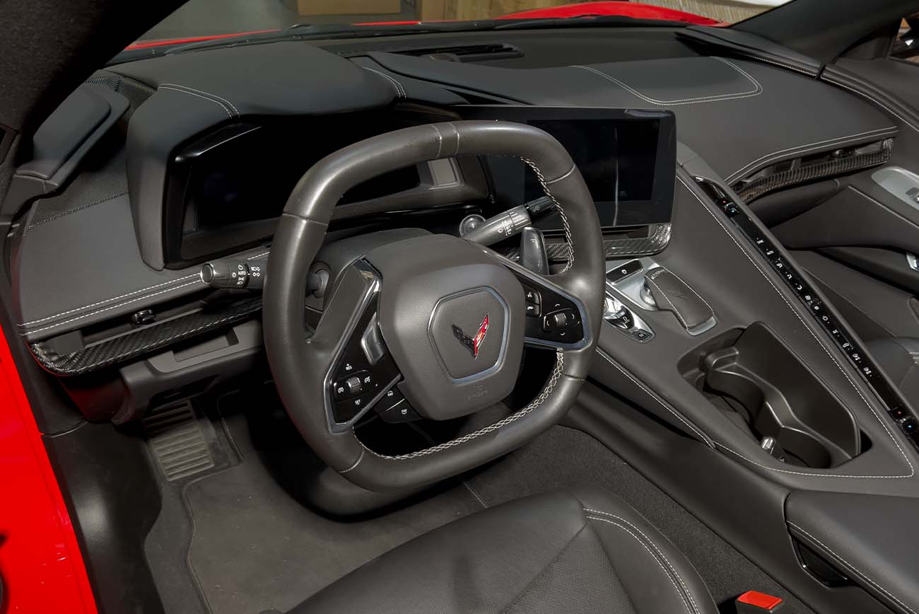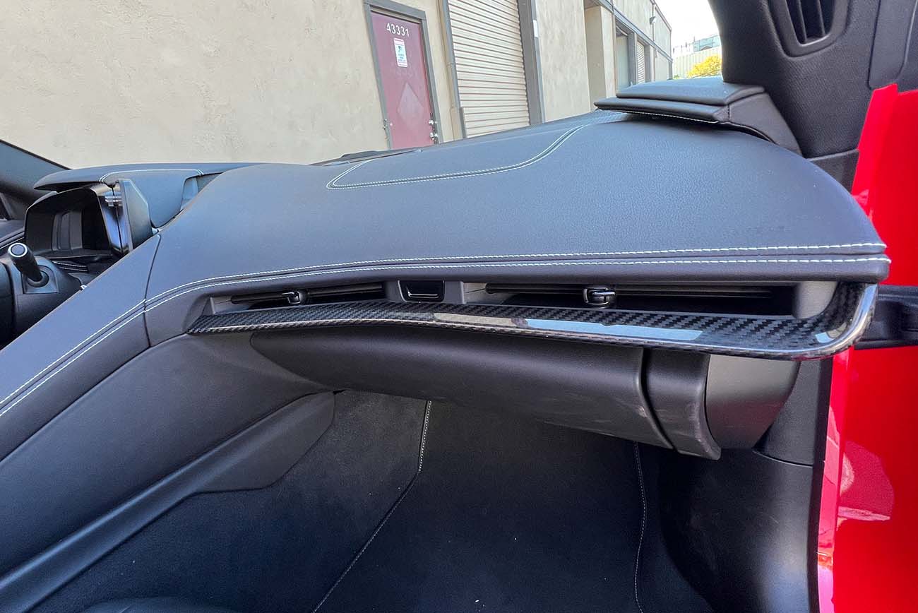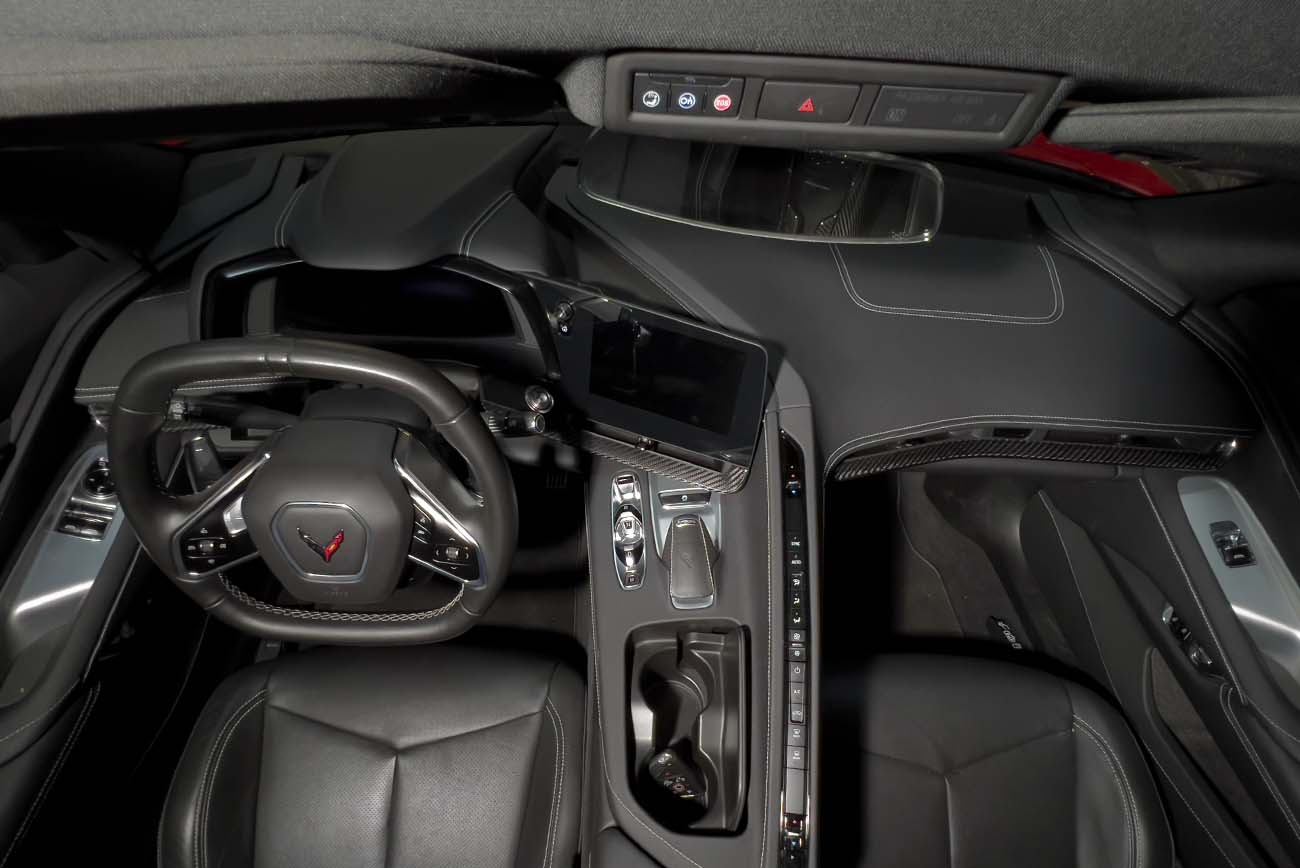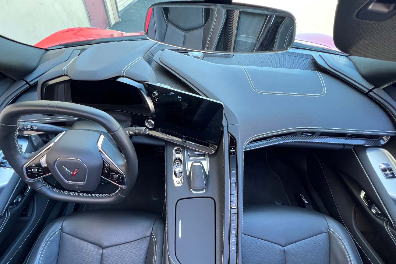 Upgrade your interior with the Factory Style Carbon Fiber Overlay Dash Trim designed specifically for 2020–Present Chevrolet Corvette C8 models, including Stingray, Z51, Z06, and E-Ray.
