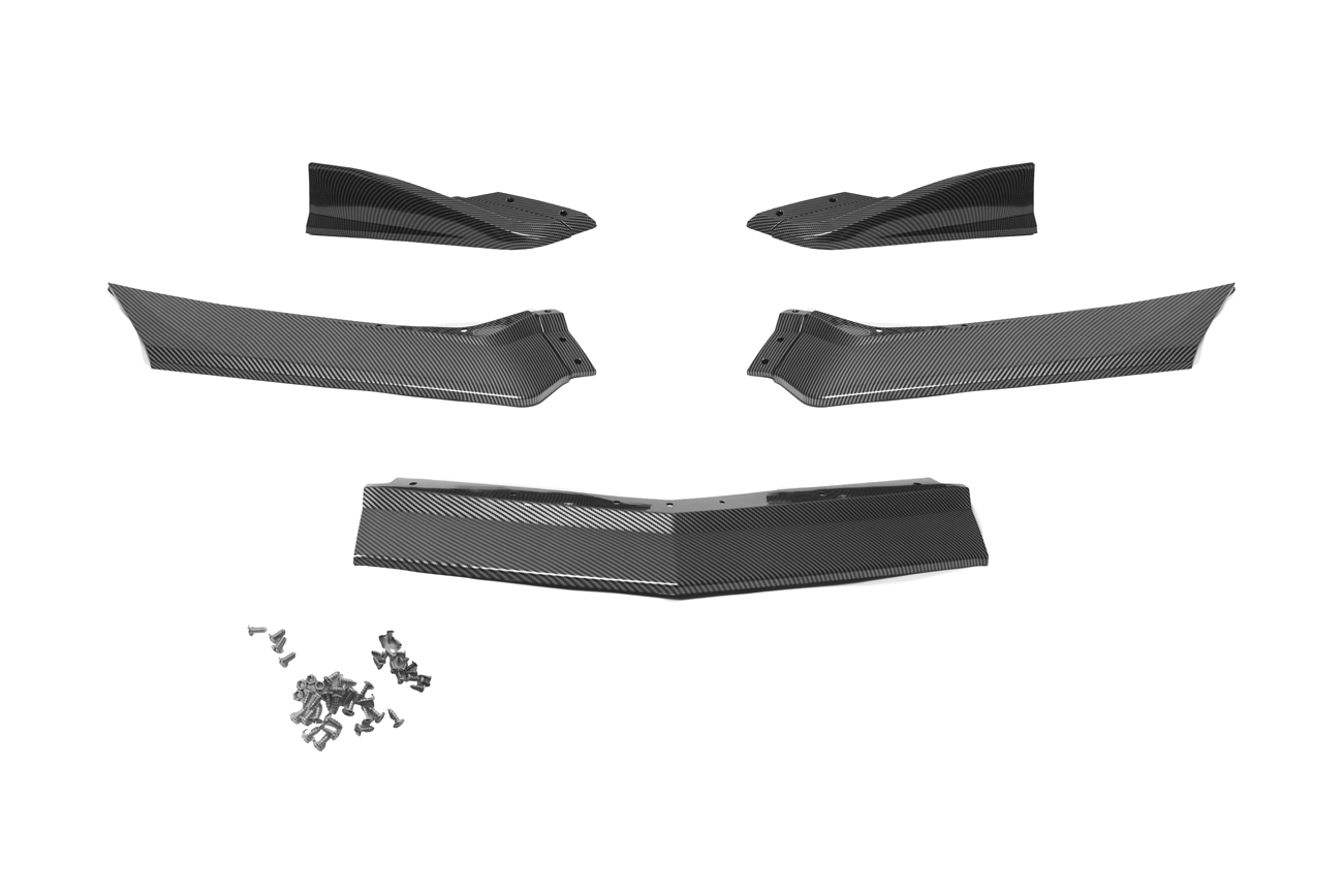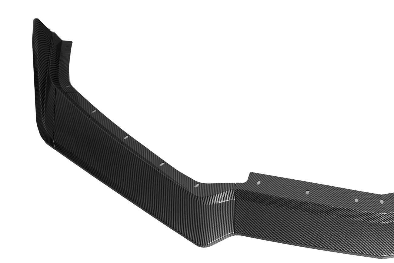 Constructed from high-grade ABS plastic, this splitter is available in either a Hydro-Dipped Carbon Fiber finish for a carbon look upgrade or a Glossy Black finish for a sleek, factory-matched appearance. The 5-piece modular design ensures precise alignment, enhanced fitment flexibility, and ease of installation—all without the need for drilling or permanent modifications to your factory bumper.