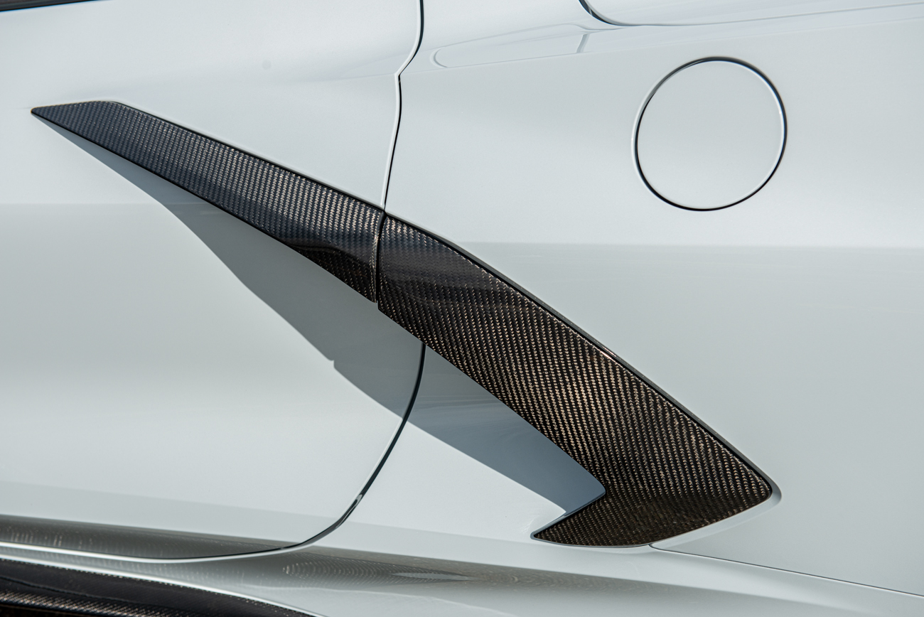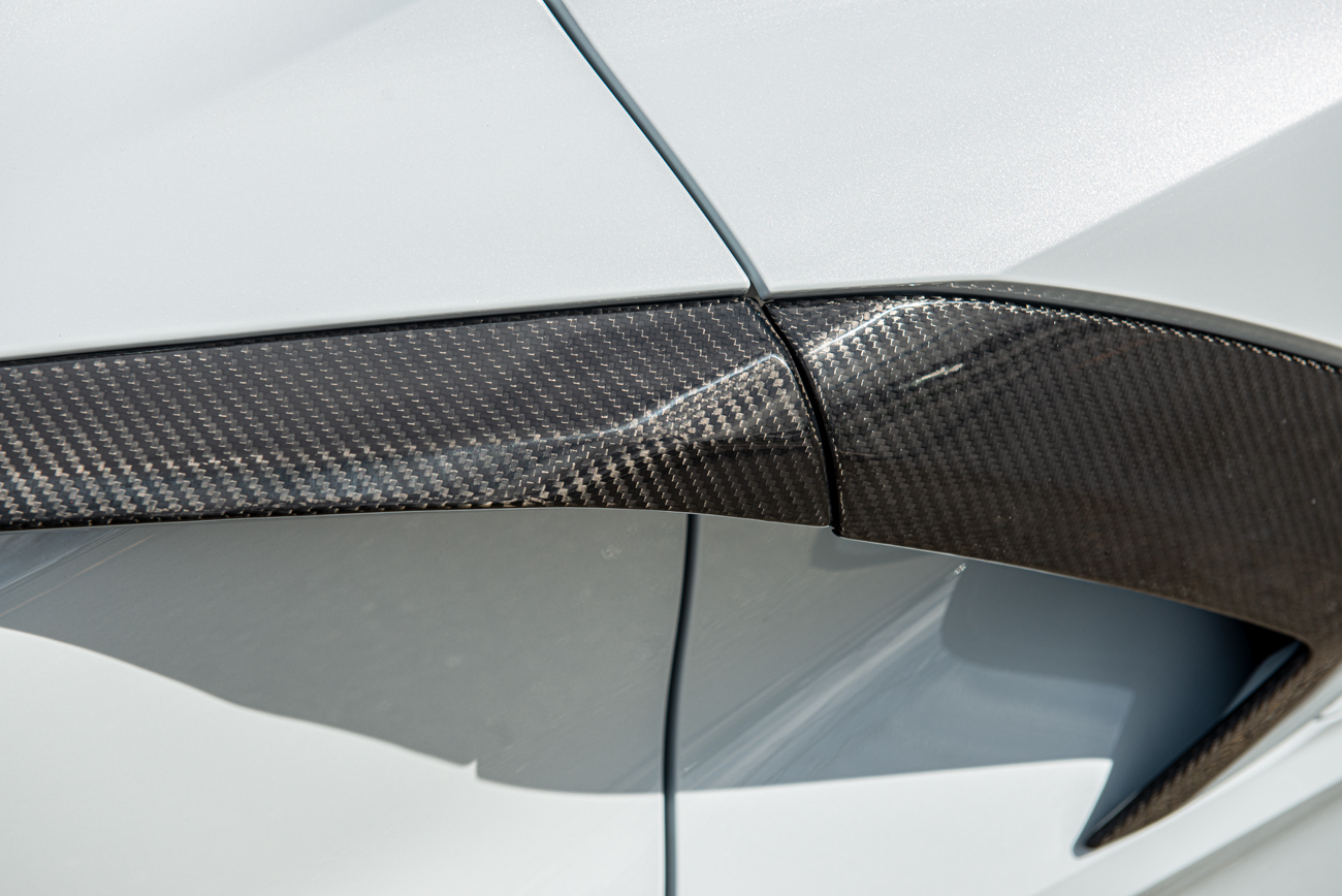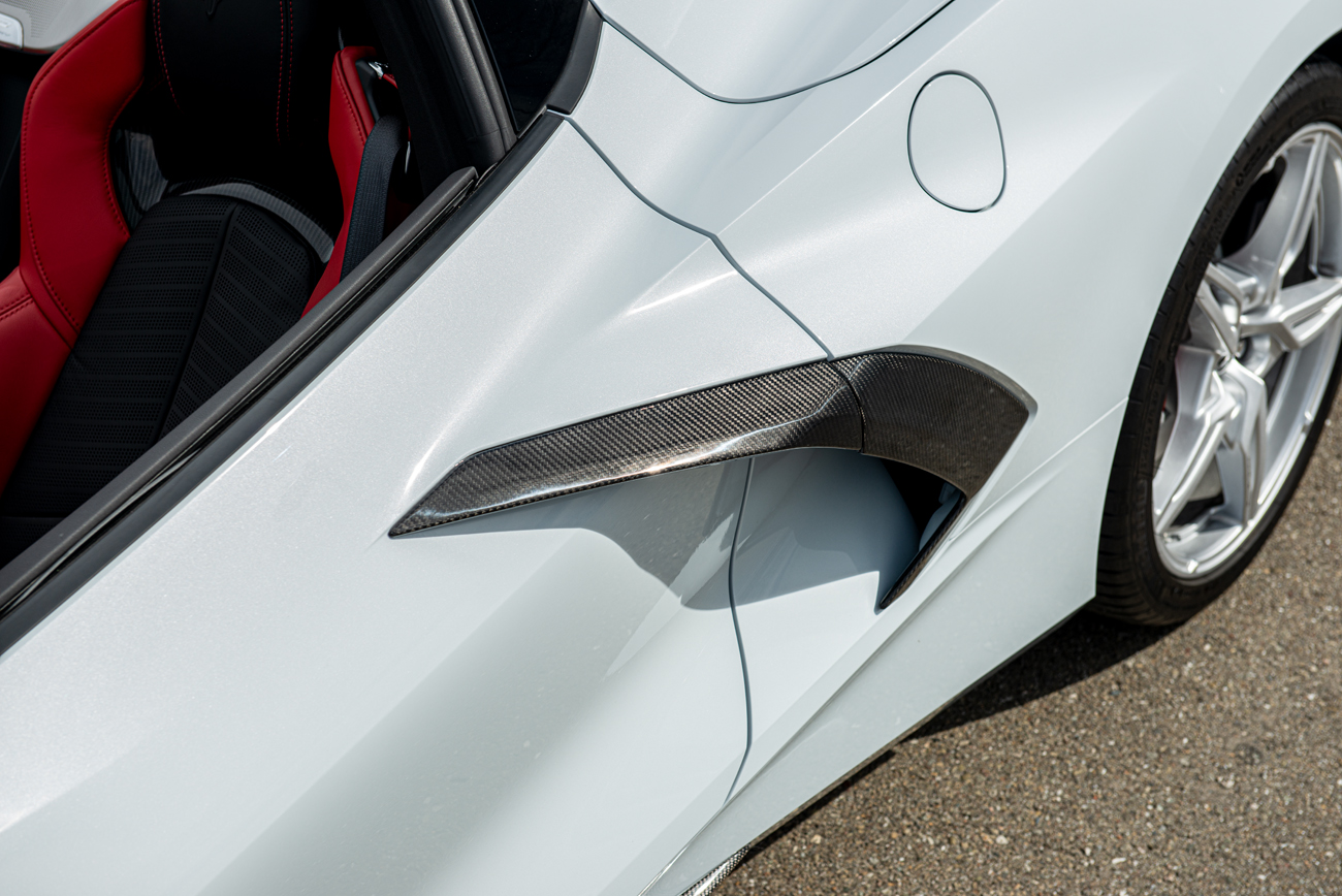 Enhance the aggressive styling of your Chevrolet Corvette C8 with our premium GM Factory Style Carbon Fiber Tape-On Door Garnish, specifically designed for 2020–Present Corvette C8 Stingray and Z51 models. Please note, this accessory is not compatible with Corvette C8 Z06 trims. Crafted from high-quality carbon fiber with a sleek surface finish, this door garnish adds a bold accent to the side fender scoop area, giving your Corvette a custom look while maintaining OEM fitment.