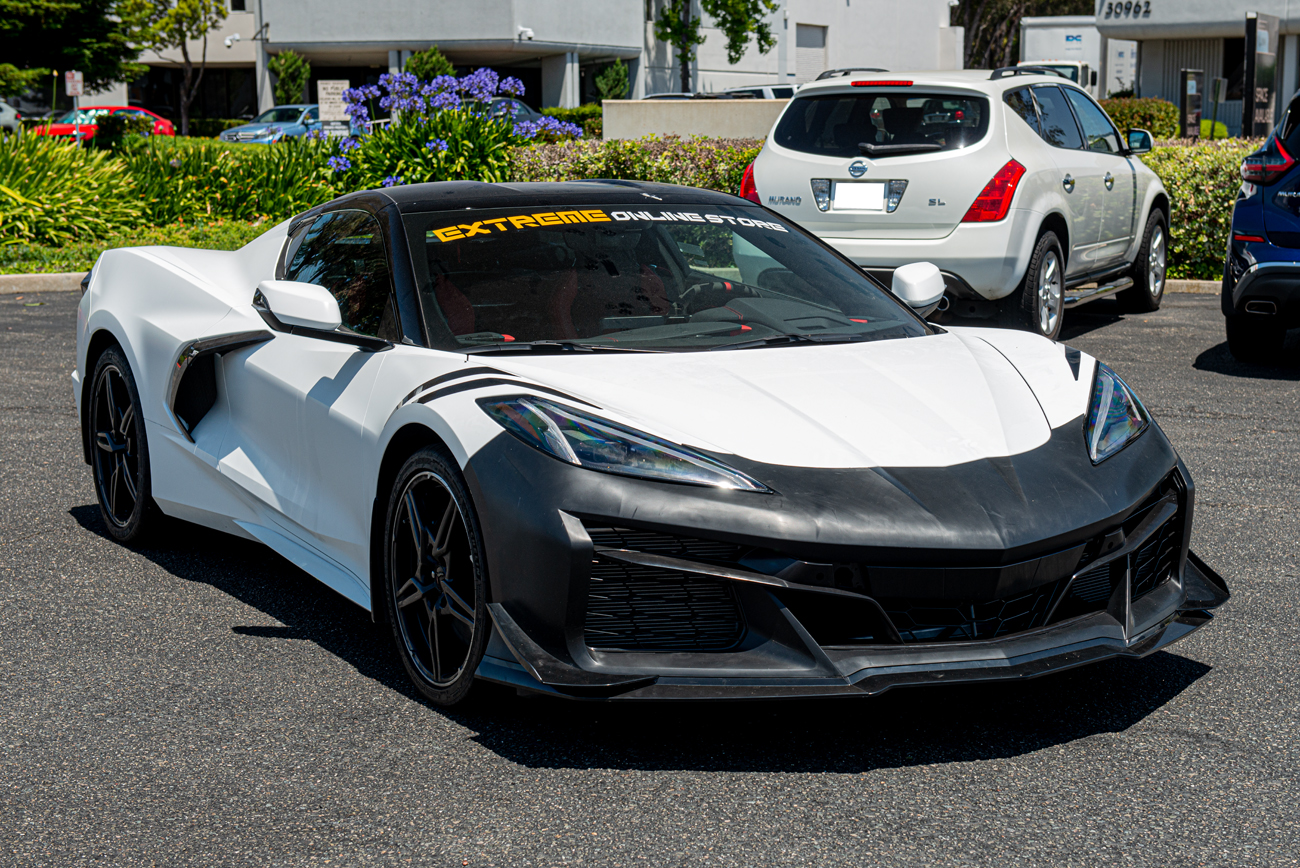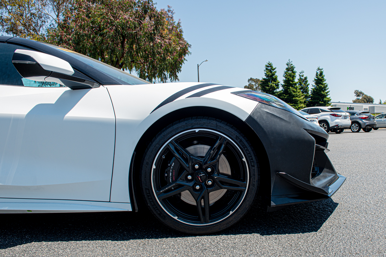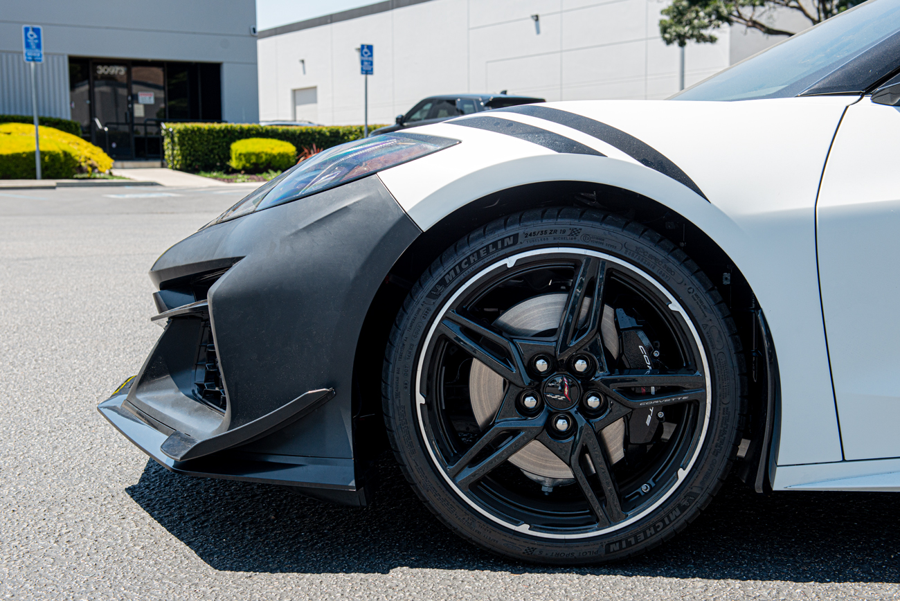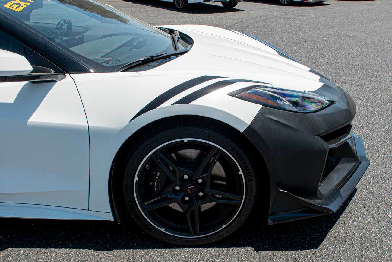 The front bumper features a larger air intake and a more aggressive design that is inspired by the Corvette Z06, while the front splitter and canards help to direct airflow of the car. Not only does the kit look great, but it also offers improved performance and functionality. The larger air intake on the front bumper allows for better cooling of the engine and brakes, while the splitter helps to reduce lift at high speeds, improving the car’s handling and stability.