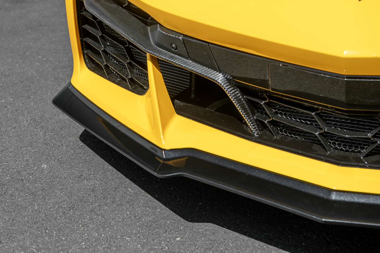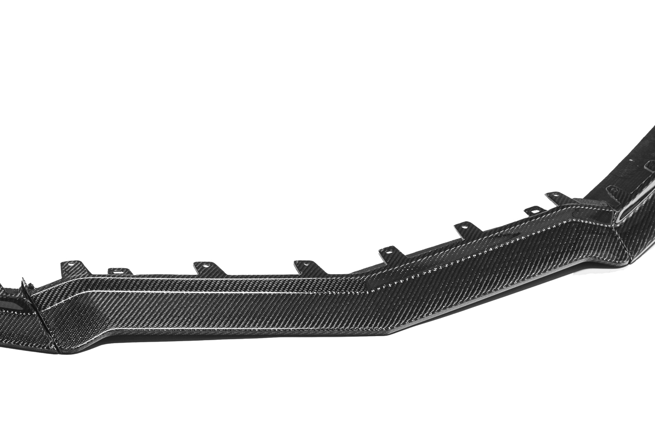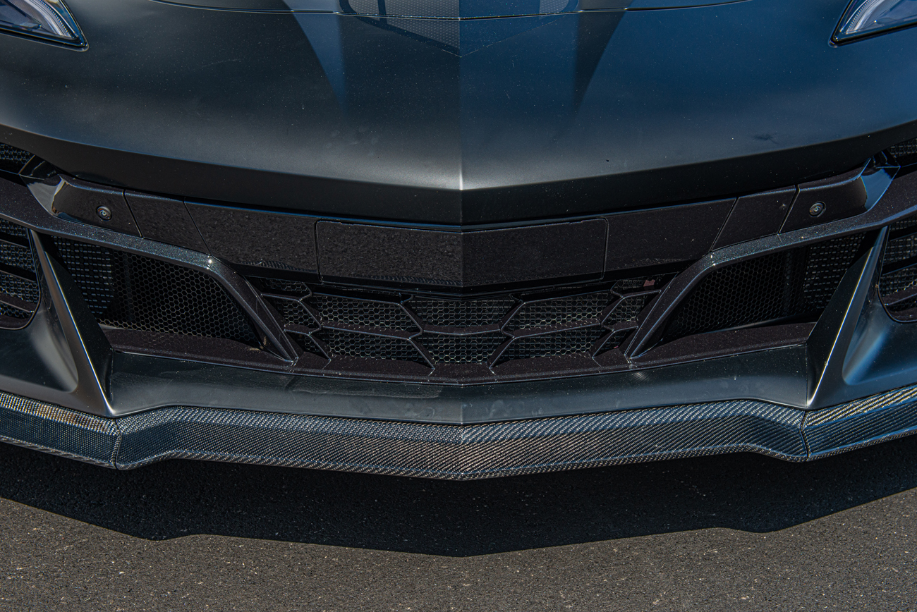 The 2020-Up Chevrolet Corvette C8 Z07 Front Splitteris a specialized accessory designed to enhance the performance and visual appeal of the Chevrolet Corvette C8 Z06 models equipped with the Z07 Performance Package. This ground effect kit is specifically designed to fit the Z06 models with the Z07 Performance Package. The ground effect kit is constructed from carbon fiber, a lightweight and strong material known for its high strength-to-weight ratio. Carbon fiber is composed of carbon fibers infused with resin, resulting in a rigid and durable product that can withstand the demands of high-performance driving.