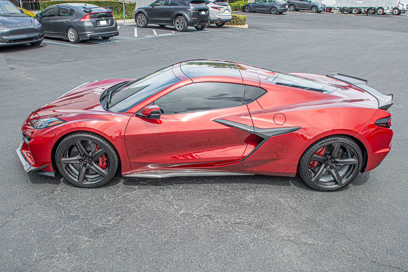 This complete kit includes 1 set of 8 pieces (left and right) to ensure a seamless fit, along with 2 rolls of double-sided tape and all required hardware for easy installation. Designed as a direct tape-on upgrade, no drilling or cutting is required, ensuring your Corvette retains its factory integrity while achieving a striking new look. Compatible with all 2023, 2024, 2025, and 2026 Chevrolet Corvette C8 Z06 and Corvette C8 E-Ray models, this garnish is the ultimate enhancement for Corvette owners who demand performance-inspired styling.