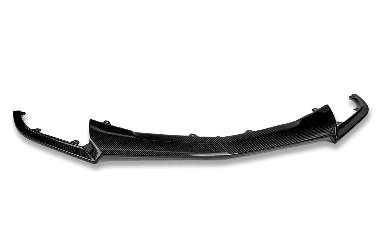The extended front splitter serves a dual purpose – it improves the vehicle’s aerodynamics and adds a sporty touch to its exterior design. By extending the front splitter beyond the standard length, it helps to generate additional downforce, which can improve stability and grip at high speeds. This can contribute to enhanced handling and cornering performance. The carbon fiber construction of the front splitter offers several advantages. Carbon fiber is known for its exceptional strength-to-weight ratio, making it an ideal material for performance applications. The lightweight nature of the carbon fiber splitter reduces the added weight to the front of the vehicle, minimizing any negative impact on the overall weight distribution.