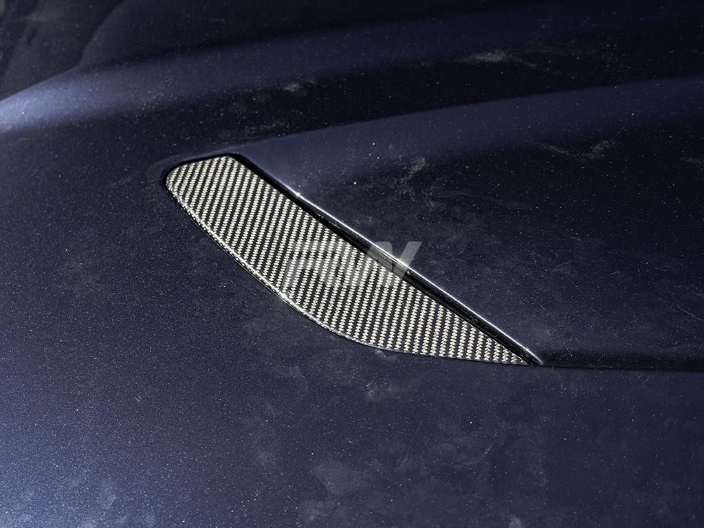 Installation for the RW metal hood uses OEM mounting locations. Installation can be completed in around 1-2 hour and requires standard hand tools. This hood will need to be prepped and painted prior to installation. The carbon fiber vent covers will require drilling pilot holes for mounting.