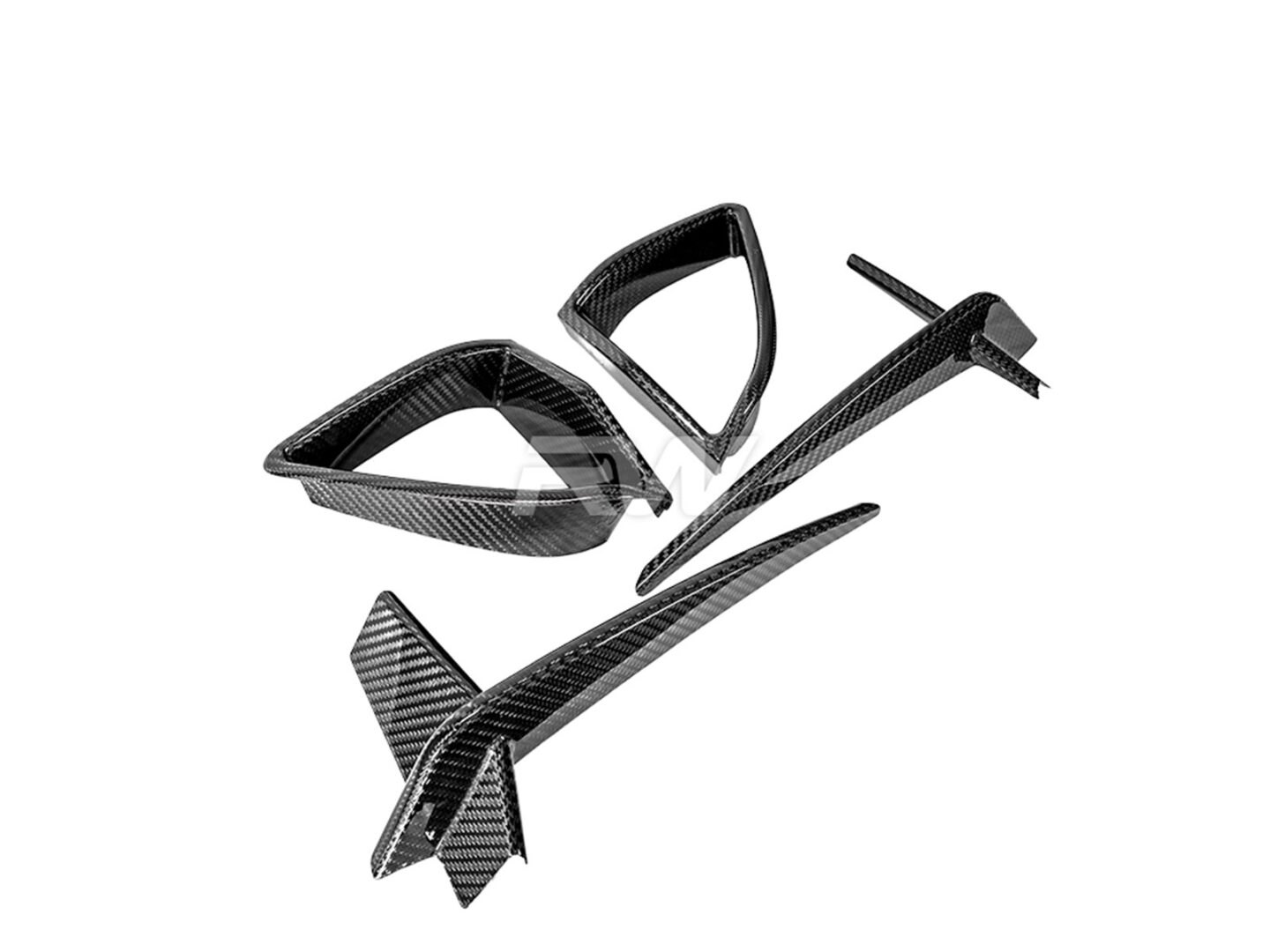 These carbon fiber fog light trims mount directly onto the front bumper near the fog light and duct openings using 3M double-sided tape. We recommend professional installation for optimal fitment and alignment. Please contact us if you have any installation questions or would like assistance from our team.
