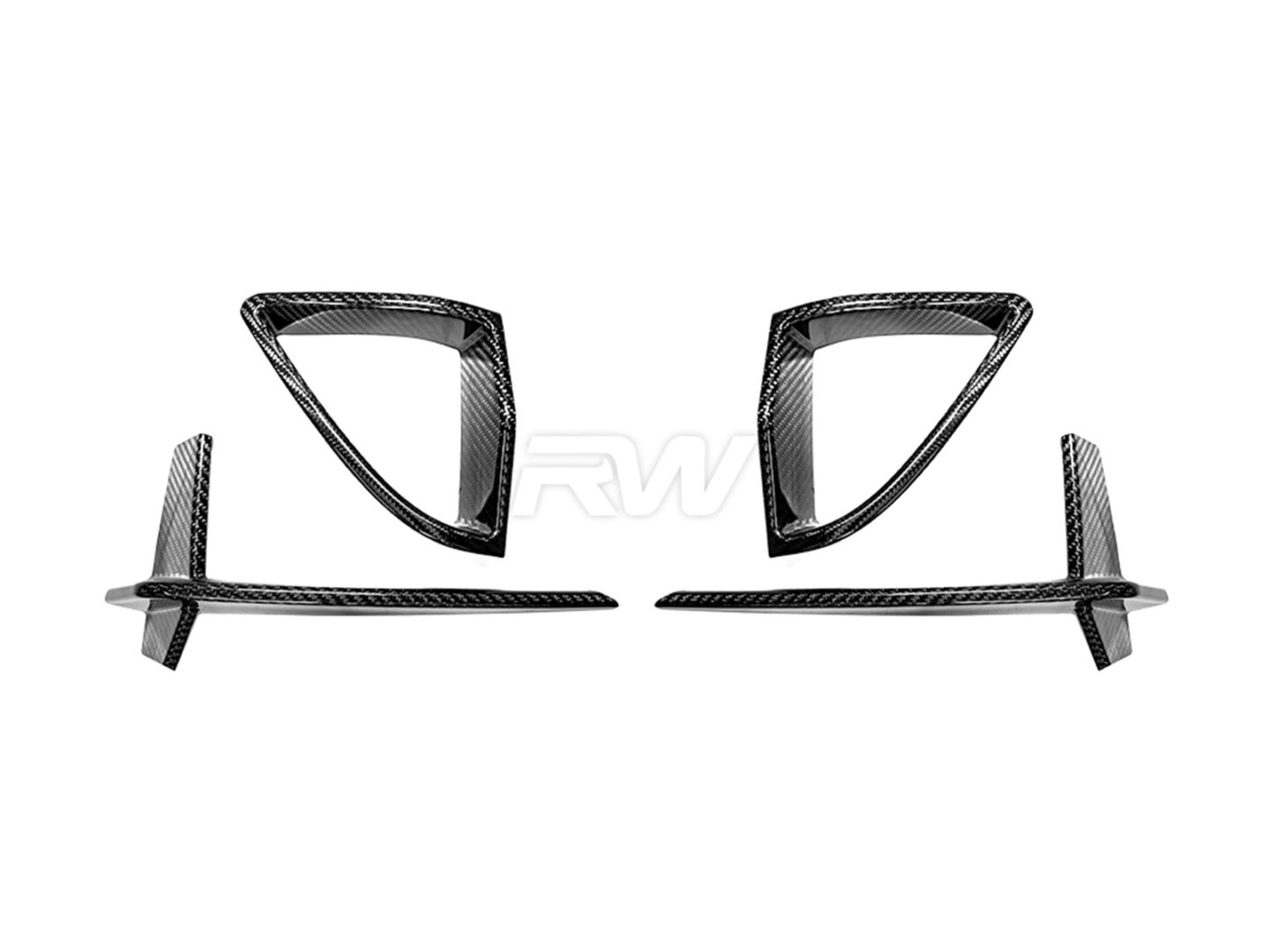 Add a subtle yet premium touch to your 8-Series with these BMW G14/G15/G16 Carbon Fiber Fog Light Trims. Designed to mount directly around the fog light and duct area of the front bumper, these trims complete the front-end appearance with a clean, performance-inspired finish. Each piece is made using 100% dry carbon fiber for an ultra-lightweight and durable construction. Finished with a UV-resistant gloss clear coat, these trims will maintain their deep shine and protect against fading or cracking over time. These fog light trims perfectly complement other RW Carbon dry carbon accessories for a cohesive look across your vehicle. If you have any questions regarding this part, feel free to contact us!