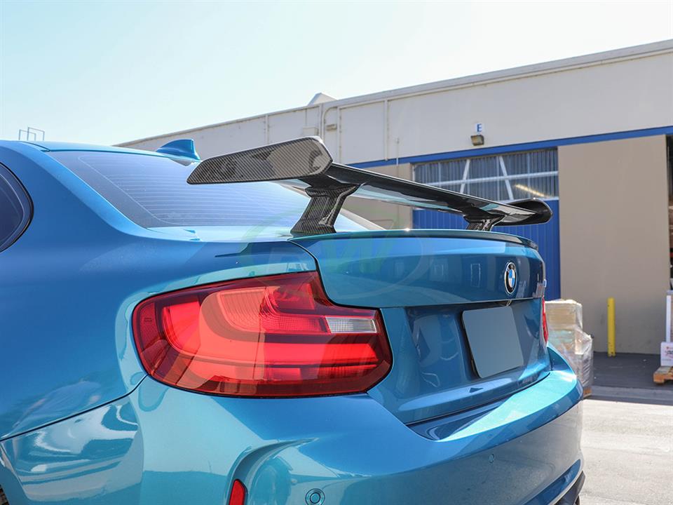 Add real world downforce to your BMW with a full carbon fiber DTM rear wing from RW Carbon. This wing is extremely aggressive and instantly upgrades your BMWs aero and appearance. It mounts directly on the trunk of various different BMW models using bolts and does require drilling holes. At high speeds there will be large amounts of force pushing on this wing so we HIGHLY recommend that it is installed at a professional shop to ensure proper fitment. Due to its full carbon fiber construction, there is no need to worry about the strength and durability of this DTM wing. We are so confident in its durability that it is backed by our quality guarantee. Each piece is clear coated for a high gloss and drag resistant finish. If you have any questions about these DTM wings please contact us.