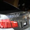 If you are after the most aggressive setup for your BMW F10 5 series or M5 then look no further than this Forged Carbon GTX Trunk Spoiler. It is the largest spoiler we make that improves aerodynamics by producing real downforce at high speeds. This GTX F10 trunk spoiler is made using authentic forged carbon, making it very lightweight and strong. No drilling or modifications are required to mount this spoiler so it can be removed at any time without damage. This spoiler simply mounts to the trunk using 3M double-sided tape and can be done in under 30 minutes. Take your BMW F10 to the next level with a GTX forged carbon trunk spoiler from RW Carbon.
