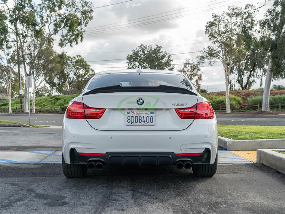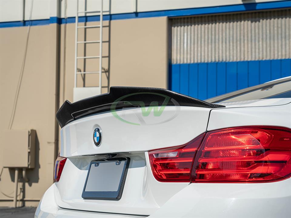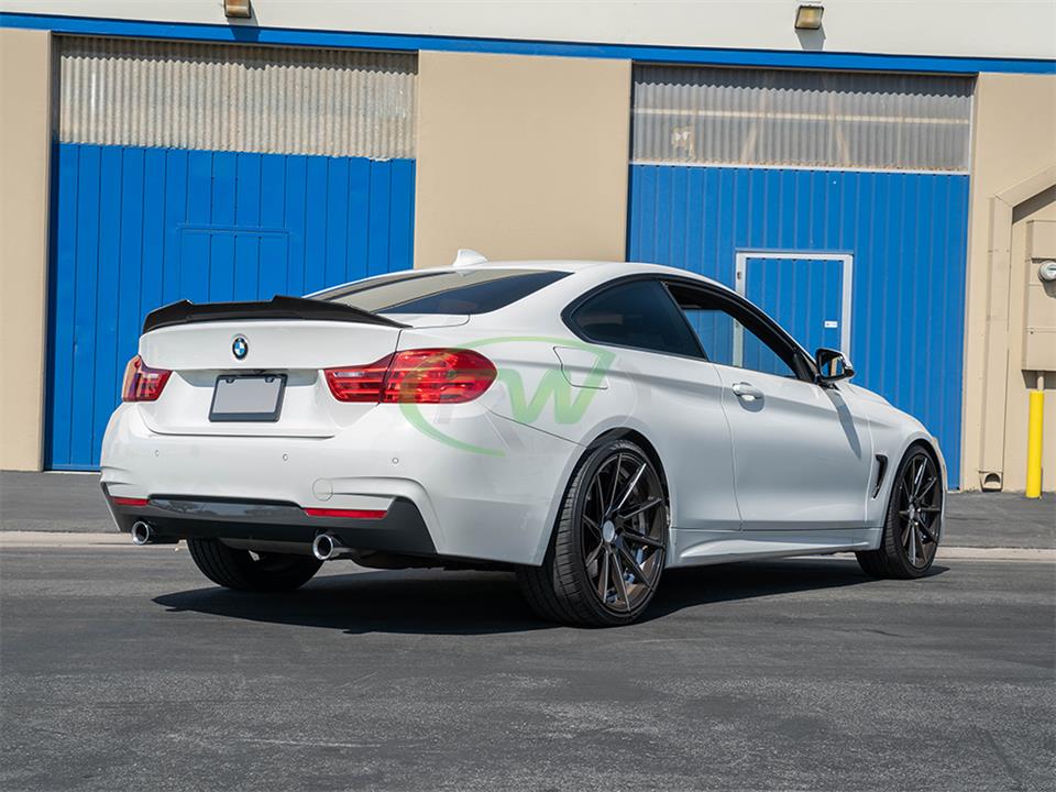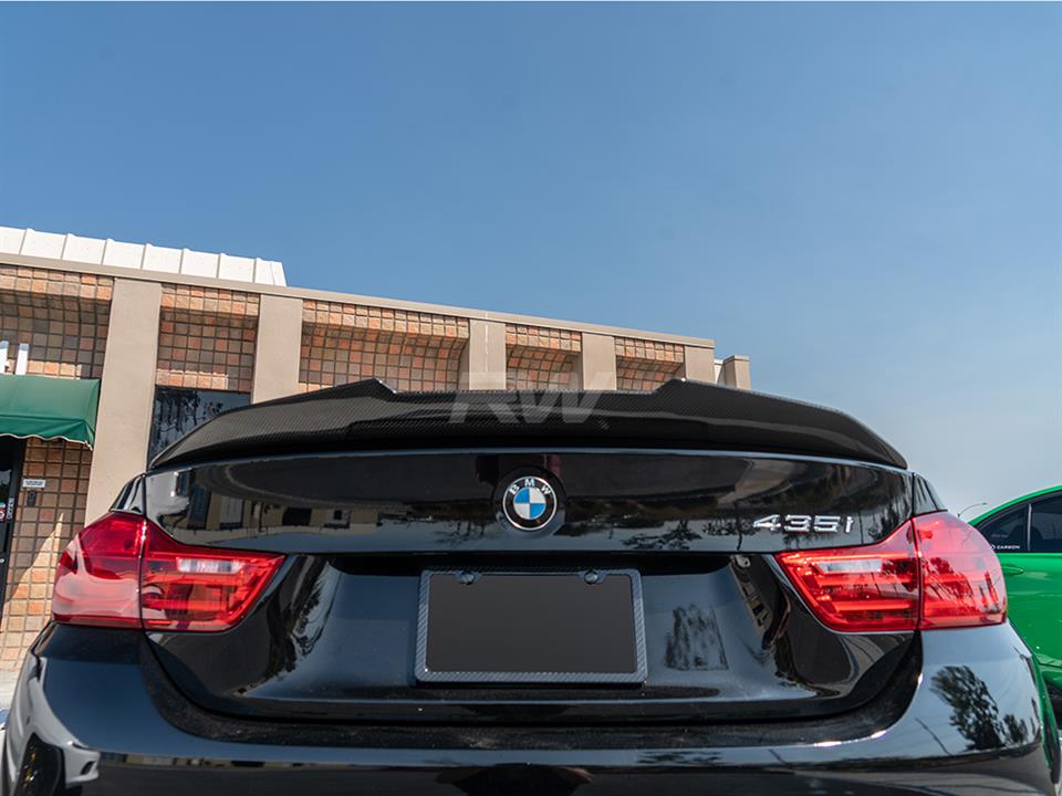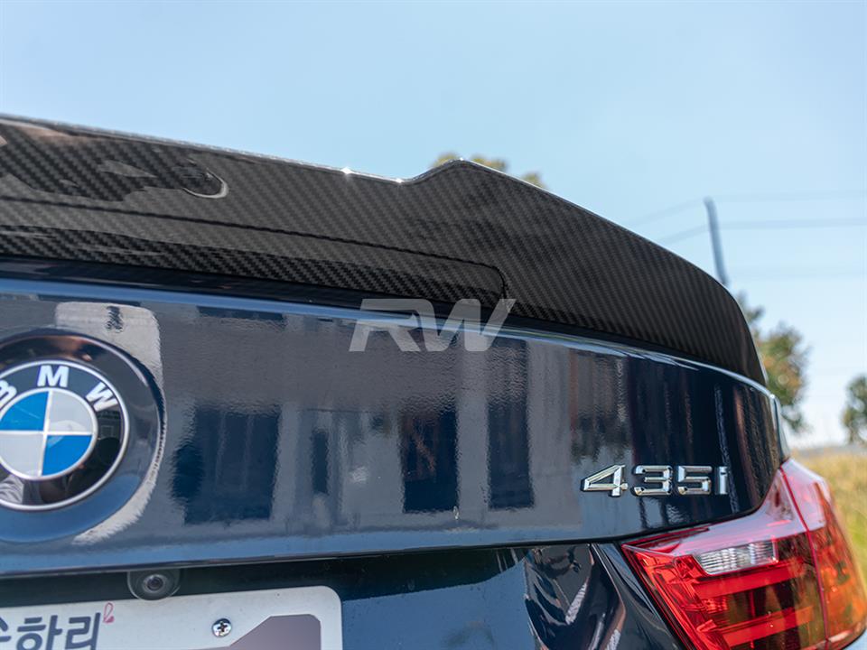 This Carbon Fiber BMW GTX Style Trunk spoiler is the perfect addition you need to get your F32 4 series to stand out. This trunk spoiler gives your 428i, 430i, 435i, or 440i that added aggressive touch you so desire. What’s unique about the RW Carbon BMW F32 GTX Style Trunk Spoiler is that it’s crafted from 100% real dry carbon fiber – Not fiberglass that is overlayed with carbon fiber. Full CF construction allows for a superb fitting product that’s also extremely lightweight and durable. Give your 2014-2020 F32 only the best with the RW Carbon F32 Trunk Spoiler in carbon fiber. If you have any questions, please contact us.