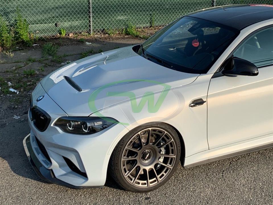 Check out our aluminum GTS style hood for your 2016-2022 BMW F87 M2 and 2014-2021 F22 F23 2-Series! This is the same style as the carbon fiber GTS style hood and offers the same aggressive styling but without the hefty price tag of carbon fiber. This product is bolt-on which requires no special modifications to your BMW, but it will need to be prepped and painted prior to installing. Each GTS-style hood is crafted from aluminum for a lightweight and durable product. Each hood comes backed with RW Carbon’s fitment and quality guarantee that so many M2 and 2 series owners have come to love. These GTS style hoods will be slightly lighter than the factory version and comes with an integrated vent to allow heat to escape. If you have any further questions, please contact us.