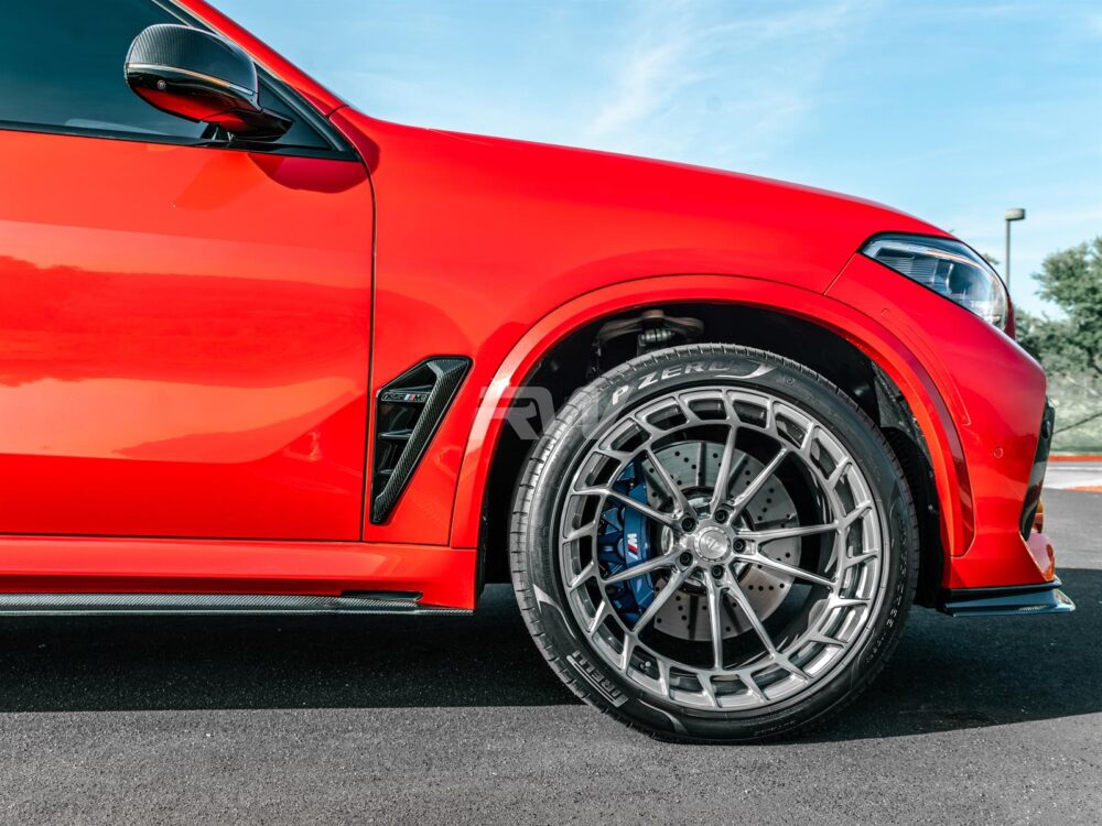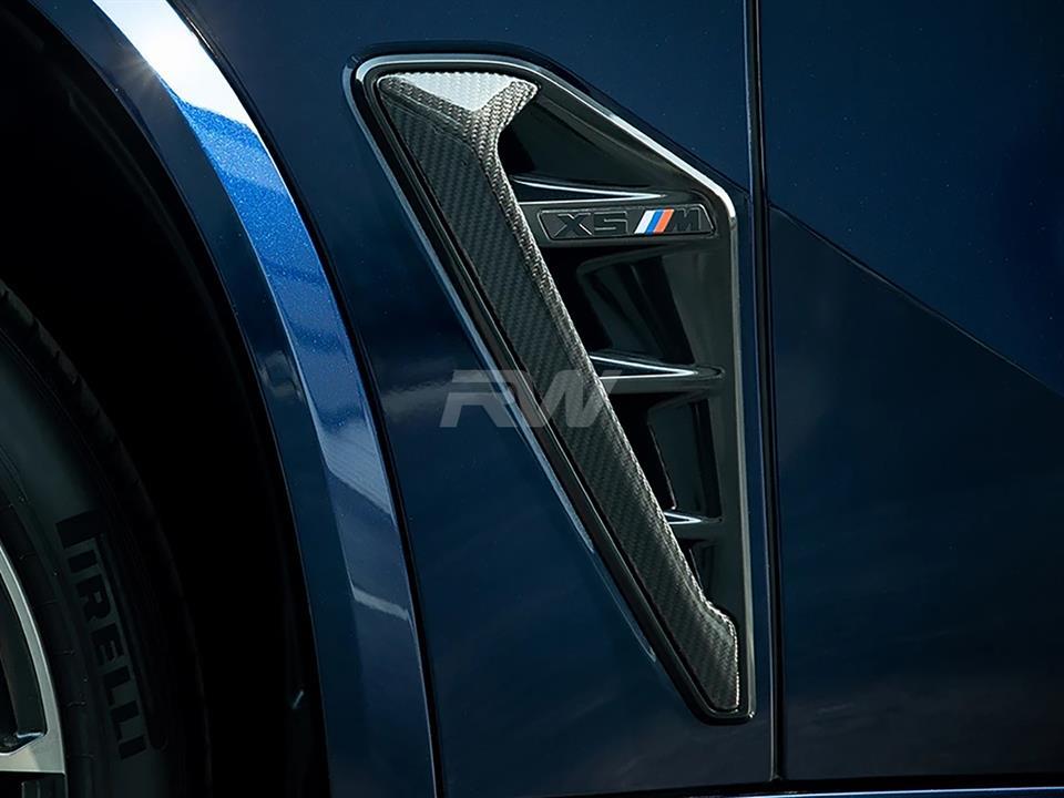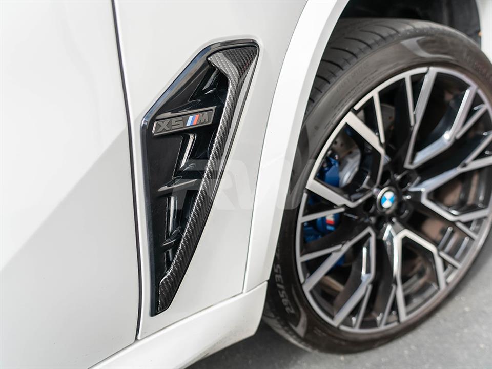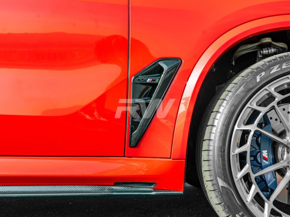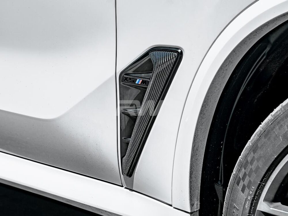 Do you want to make a modest CF upgrade to the appearance of your BMW F95 X5M? If so these BMW F95 X5M Full Carbon Fiber Side Vent Covers are the pieces you need to start or finish off your carbon fiber build. Our carbon fiber side vent covers are sold as pairs and simply replace your existing chrome or black side vent trim using OEM mounting locations. Each set is crafted from genuine 2×2 carbon fiber and completed with a UV-resistant clearcoat which ensures they maintain their shine through use. These pieces alongside the rest of our parts come with a quality and fitment guarantee so you can rest assured you’re getting a quality part every time. Fits BMW F95 X5M 2020-2023 models.