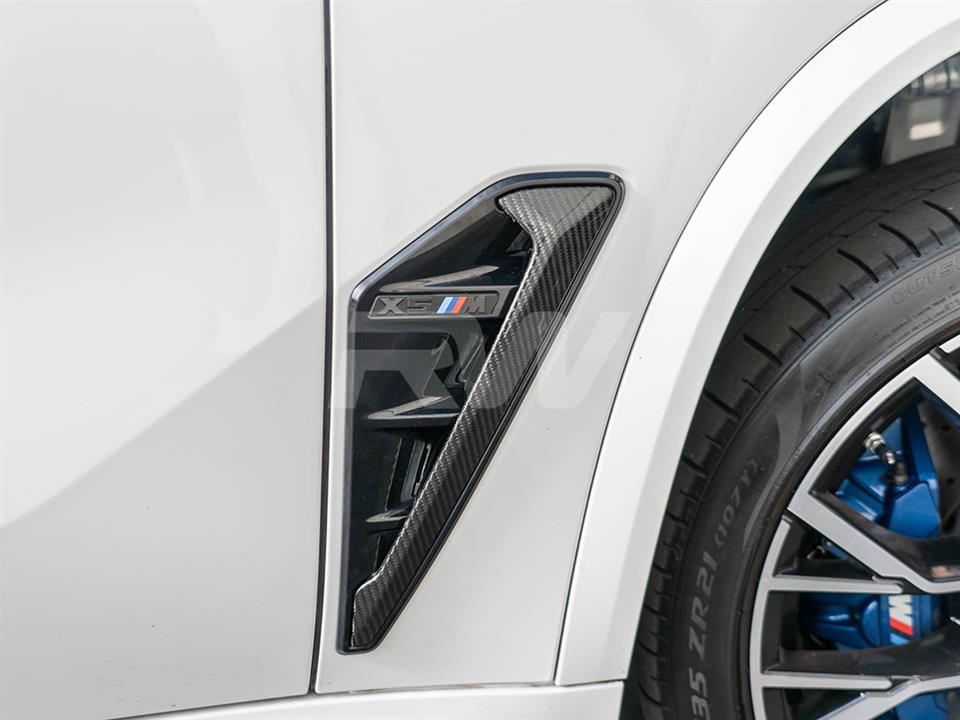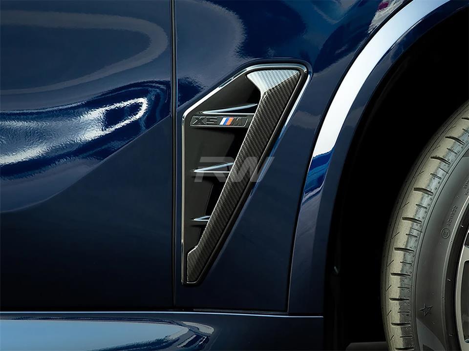 These carbon fiber side vent covers for the F95 X5M will cover the OEM fender trim and attach using 3M tape and promoter.