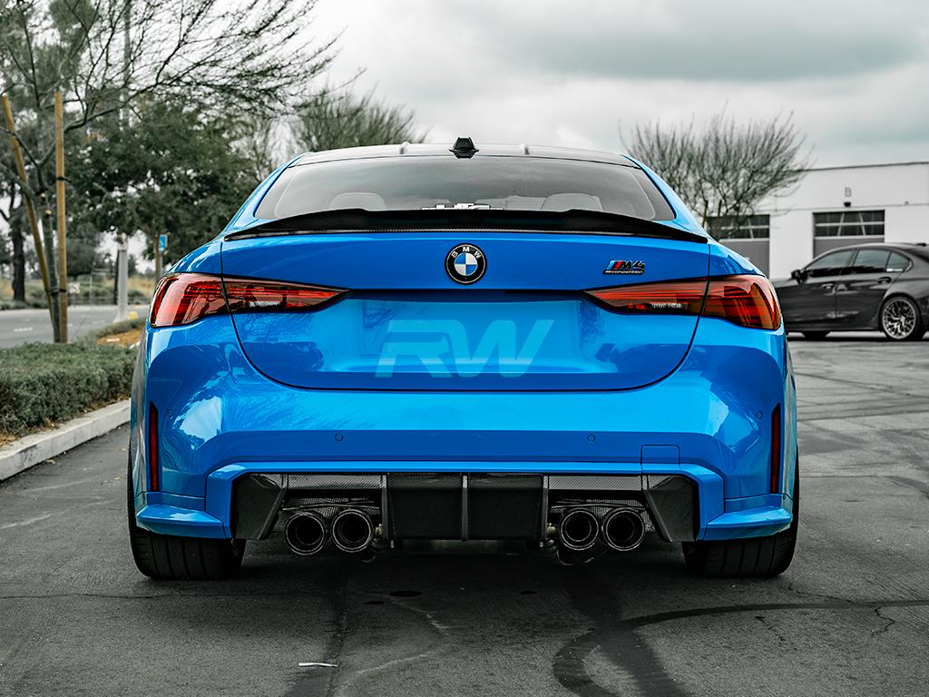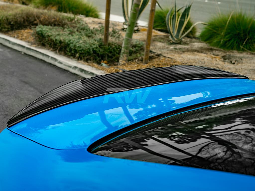 W Carbon is happy to introduce our RW Signatures Carbon Fiber BMW G22 4-Series and G82 M4 Trunk Spoiler. This trunk spoiler was designed in-house at RW Carbon tp bring you a unique style that can’t be found anywhere else. These trunk spoilers are made using high-quality carbon fiber fabric in a 2×2 weave pattern so they will perfectly match your other RW Carbon fiber parts. This RWS CF trunk spoiler installs in minutes using 3M double side tape, which can be purchased from us. Fitment and quality are of course guaranteed by us and we quality check every spoiler before it ships worldwide. Be one of the first to rock this new RWS trunk spoiler on your BMW G22 4-Series or G82 M4. Contact us today if you have any questions.