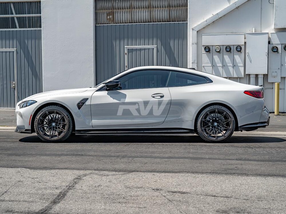 Feature the most aggressive styling available for your BMW G82/G83 M4. These BMW G82/G83 M4 Coupe/Convertible RWS Carbon Fiber Side Skirt Extensions will upgrade the side view appearance of your vehicle and take it to the next level. These side skirt extensions are always made with RWs genuine 2×2 weave pattern and will match any other carbon fiber products that you may have. Installation is recommended to be done by a professional to ensure the best fitment possible. We quality check each carbon fiber piece from our Southern California facility before we ship them globally. Come in or call us today to receive your very own G82/G83 M4 Coupe/Convertible RWS Side Skirt Extensions and experience a new carbon fiber finish!