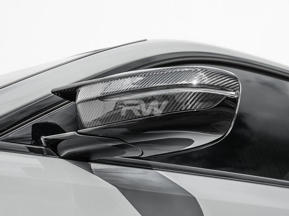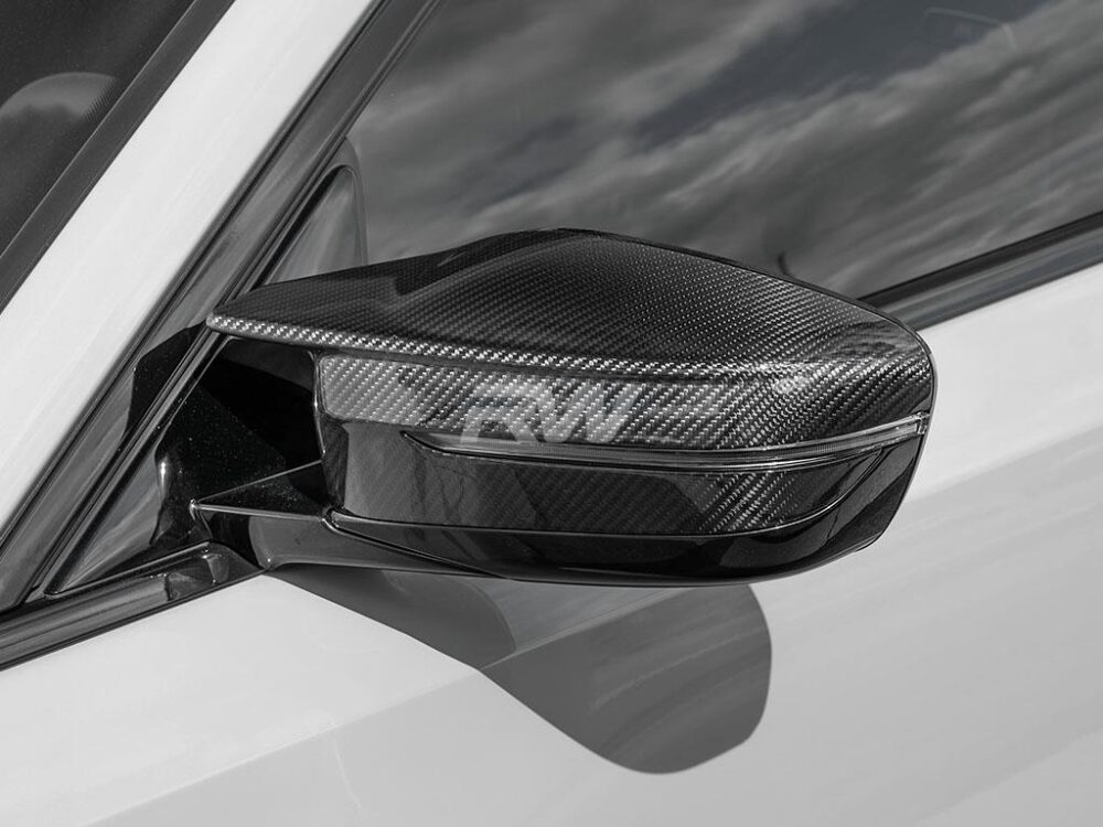 Add more carbon fiber to your BMW G87 M2 with a set of these RW Carbon Fiber Mirror Cap Replacements. These mirror caps are replacement caps so rather than sticking on over your existing mirrors they replace your painted housing. These carbon fiber mirror replacements are produced with 100% dry carbon fiber. This produces a product that has an improved weave quality, and a much longer product life. Installation for the G87 M2 carbon fiber mirrors is quite simple and takes about 30-60 mins depending on your skill level. RW Carbon is committed to bringing you only the best quality carbon fiber items for your M2 and these replacement carbon fiber mirrors are no exception!