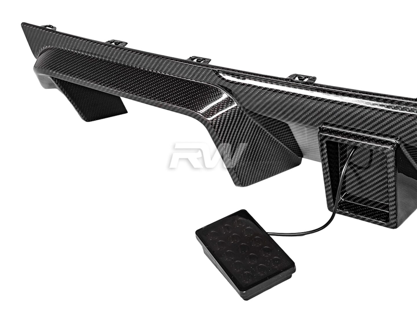 Complete the rear end of your BMW G87 M2 with our GT Style Carbon Fiber Diffuser. This piece transforms the rear profile of your vehicle with an aggressive, track-inspired design that still maintains a clean and OEM-like flow. It’s crafted using genuine 2×2 weave carbon fiber for a consistent finish and enhanced durability. The diffuser features aggressive vertical fins that enhance the car’s rear presence and pairs great with other carbon upgrades like side skirts and a trunk spoiler. It also includes a center-mounted light that functions as a third brake light when pressing the brakes. Each unit is finished with a gloss clear coat that’s UV resistant to keep it looking new for years. If you have any questions regarding this part, feel free to contact us!