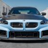 Installation for the BMW G87 M2 OEM Style Carbon Fiber Grille requires front bumper removal. It will utilize OEM mounting locations.