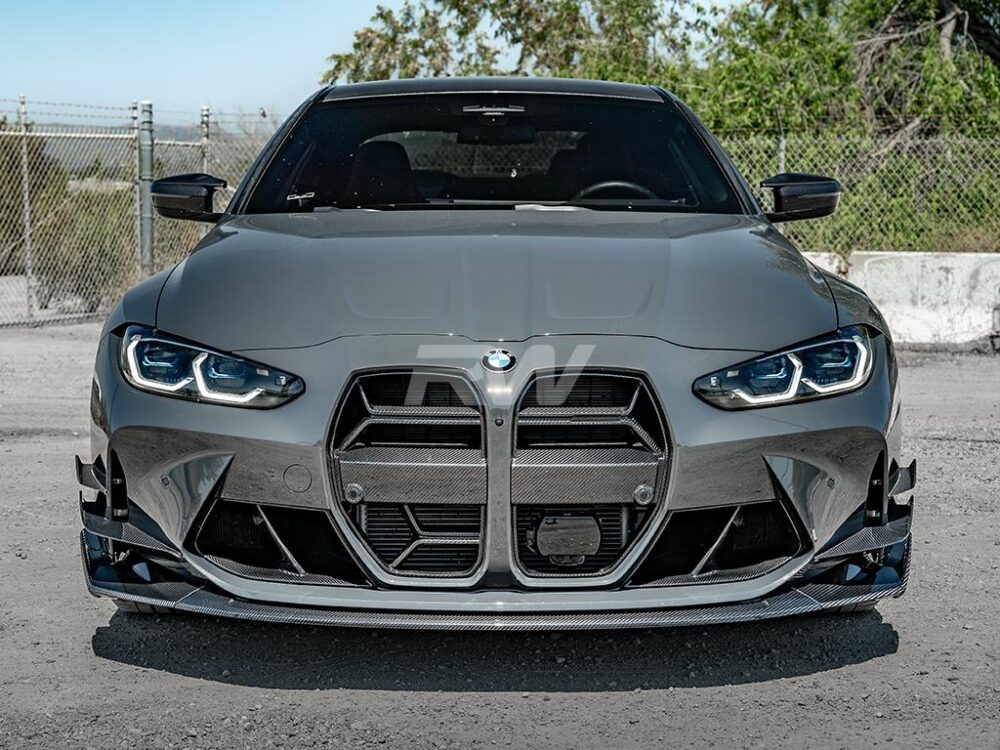 RW Carbon has added a new carbon fiber product to our arsenal with this G80, G82, and G83 M3 and M4 CSL Style Front Lip Spoiler. This G8X CSL Style Front Lip incorporates great design elements that match the contours of the car while minimizing ground clearance lost. Like all of our other parts, this front lip comes with a superior fitment and quality guarantee, so if you received a product that does not fit or has a defect we will replace it free of charge. After manufacturing, we finish each item with a UV-resistant clear coat to promote a lasting shine. Featuring genuine 2×2 weave carbon fiber, this front lip will match any current or future RW carbon fiber that’s on your vehicle. This installs simply with OEM screws and taps however it’s always recommended to be done by a professional.