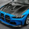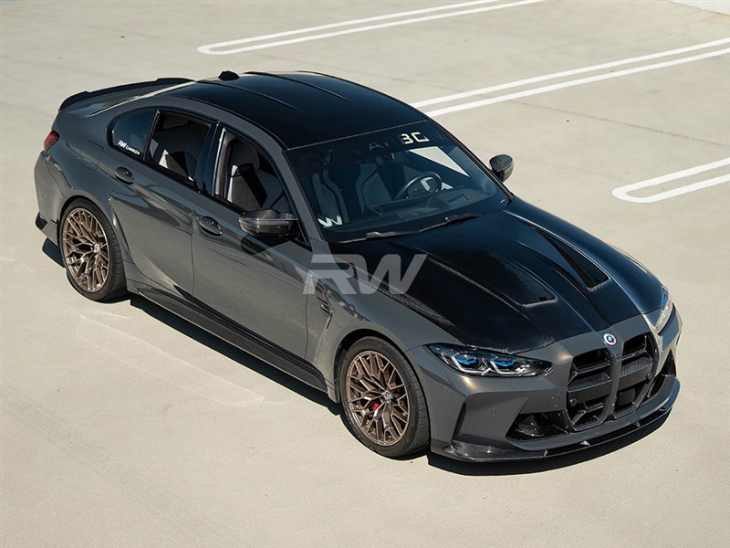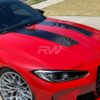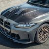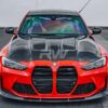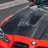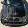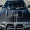 RW Carbon now has a full Dry Carbon Fiber Hood for your new G80 M3 or G82/G83 M4 which offers a much more aggressive styling over the OEM hood! This DTM hood’s installation is bolt-on requiring no special modifications to your BMW. Each hood is crafted from 100% dry carbon fiber that will perfectly match any other RW or OEM parts you have installed on the car. Each hood comes backed with RW Carbon’s superior fitment and quality guarantee that so many M3 & M4 owners have come to love. Our DTM Style hoods come with studs built into the hood to make installation easier. Other than looking increasingly aggressive on your vehicle, this RW hood is 50% lighter than OEM. Elevate your G8X M3 or M4 today with a new carbon fiber DTM hood from RW Carbon!