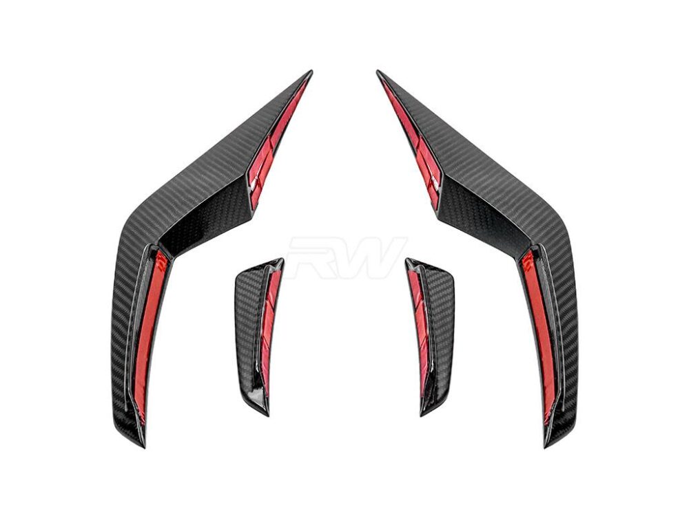Upgrade the front-end appearance of your BMW G90 or G99 M5 with these Carbon Fiber Canards. Crafted from genuine 2×2 weave carbon fiber, these canards are the perfect enhancement to give your M5 a bolder and more aggressive presence. Each piece is finished with a high-gloss UV-resistant clear coat for added protection and lasting shine. Installation is quick and simple using 3M tape, making it an easy way to elevate your exterior without any permanent modification. These canards are designed specifically for the contours of the G90/G99 M5 front bumper. If you have any questions regarding this part, feel free to contact us!