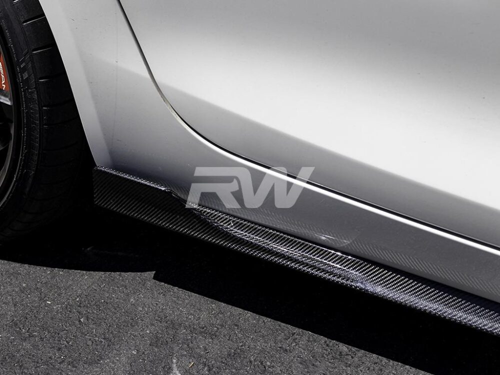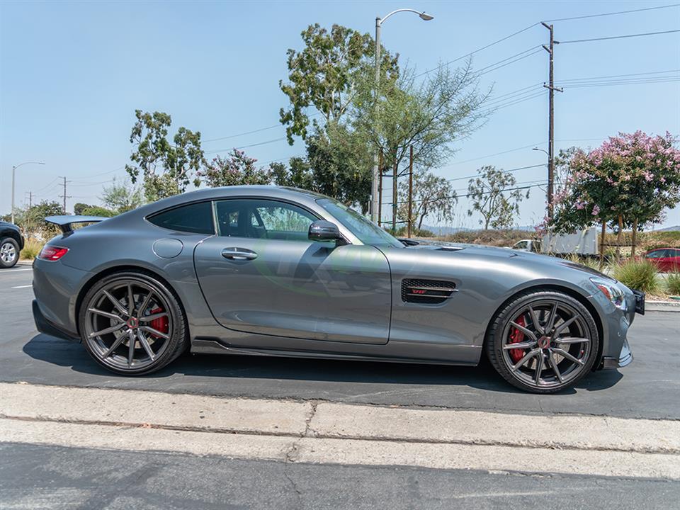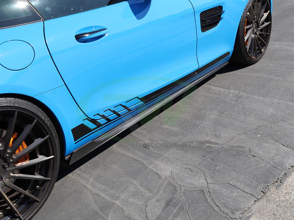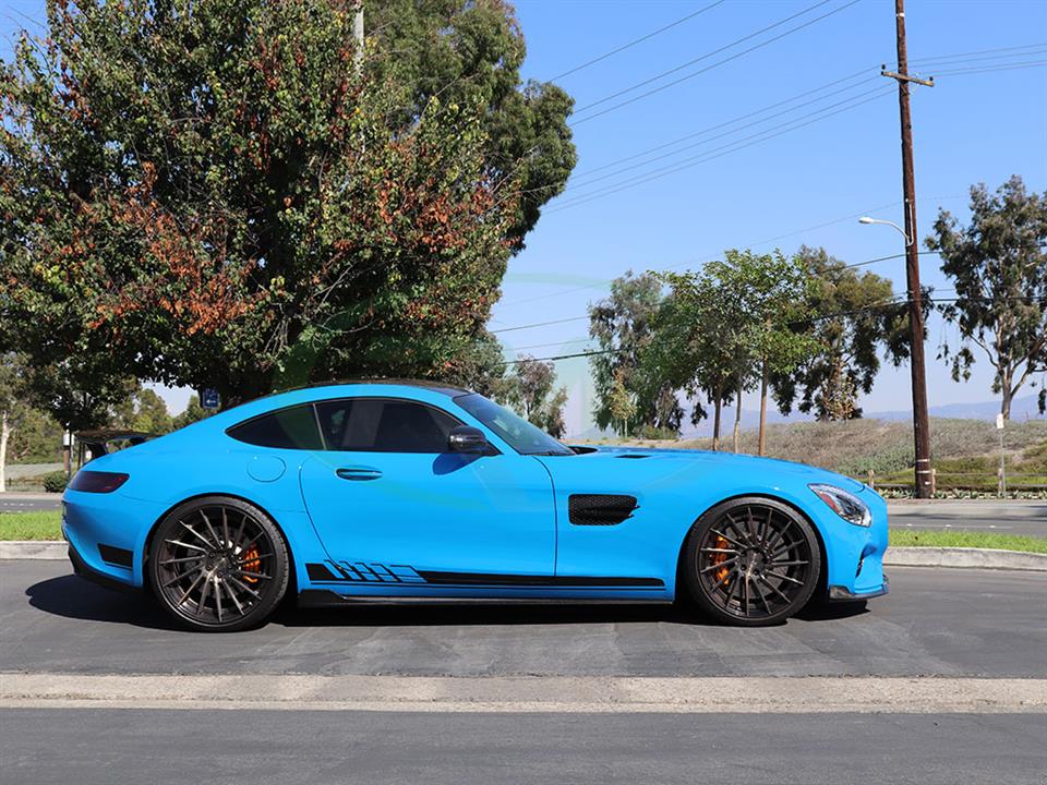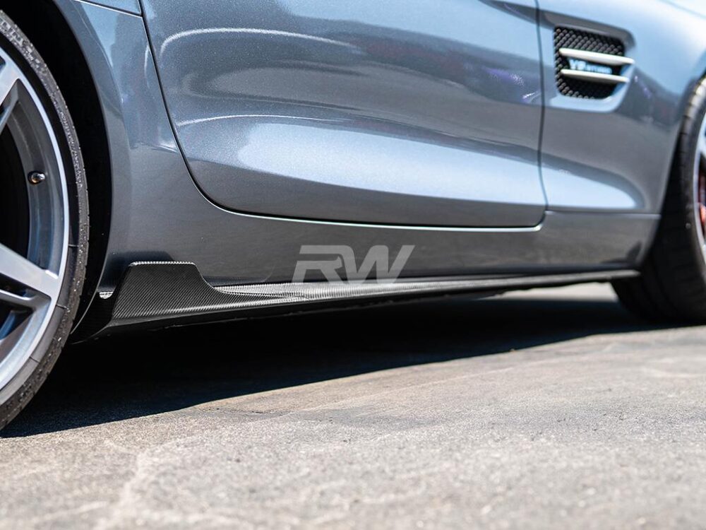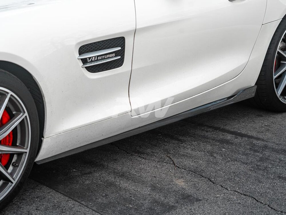 Complete your RW Carbon fiber kit on your Mercedes C190 or R190 GT/GTS with a set of our side skirt extensions. Just like our other Mercedes GT and GTS parts our side skirts are hand crafted from 100% 2×2 carbon fiber – No fiberglass is used to create this item. Since these Mercedes GT and GTS carbon fiber side skirts are made from 2×2 CF they will match all OEM and RW parts you already have equipped on your vehicle. Installation can be completed with self tapping screws, which are included with your order. To ensure your set of carbon fiber Mercedes GT or GTS side skirts last we finish them with a special epoxy clearcoat which yields a brighter, more vibrant finish and makes them less prone to staining from road debris. Buy with confidence – All RW Carbon parts come with our fitment and quality guarantee. Achieve that modified look without overspending when you choose RW for your Mercedes C190 GT/GTS carbon fiber side skirt extensions.