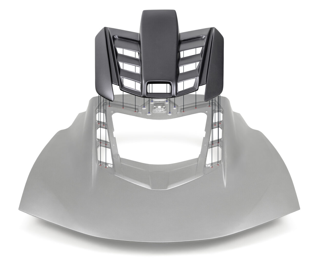•  Race car inspired, directs fresh air from top of vehicle into engine bay